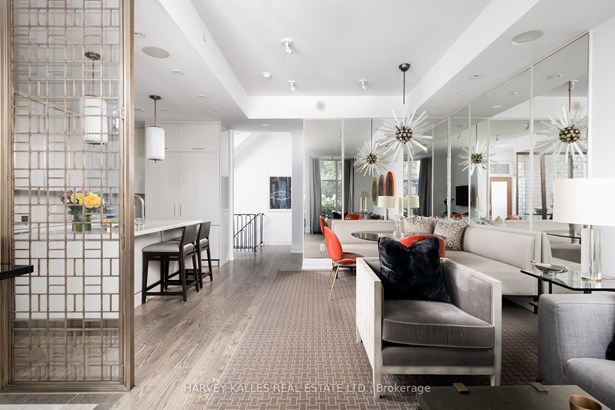 127 Pears Ave presents an opulent living experience a stone's throw away from Yorkville. As one of the largest townhomes it stands out among a collection of only five residences. Impeccably designed by Gluckstein, the interiors boast contemporary and elevated finishes. Part of the 170 Avenue Condominium, with its own exclusive front door access and direct access to 2 u/g parking spots. The sleek chefs kitchen, equipped with top-of-the-line Miele appliances is combined with a formal dining area, and living room. 2nd floor, you'll find an office space, primary bedroom w custom W/I closet, spa-like ensuite w/heated flooring and sitting area w gas fireplace & balcony. 3rd floor features a generously-sized bedroom, family room, office area, and two bathrooms with terrace. The family room on this floor can easily be converted into a 3rd bdrm. Rooftop terrace offers a private oasis to unwind. This exceptional property is an absolute must-see.