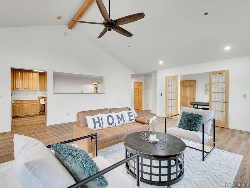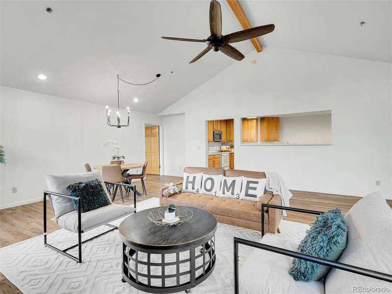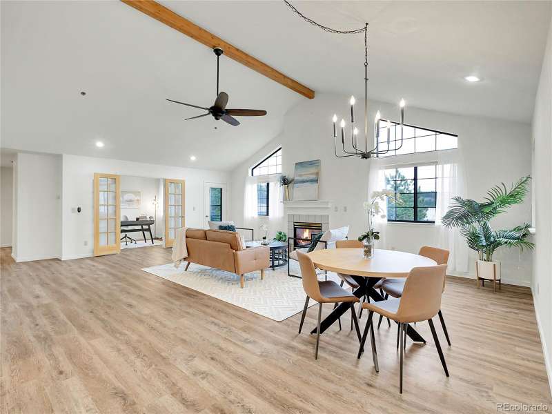 Welcome to your turnkey dream home in sunny Evergreen, CO! This stunning 3-bedroom, 3-bathroom penthouse 55+ condo spans 1,830 square feet and offers an unparalleled Foothills lifestyle. Nestled in a prime North Evergreen location, this home combines rustic charm with modern luxury. The airy and spacious kitchen is perfect for entertaining, while the expansive living area, complete with a cozy fireplace, luxury vinyl floors and soaring ceilings invites relaxation. Each bedroom boasts massive closets and the spacious bathrooms provide a touch of everyday indulgence. Enjoy new patio flooring, perfect for morning coffees or evening sunsets. Fabulous community spaces and amenities are the cherry on top for additional areas to unwind and connect. Centrally located, this home is walkable to North Evergreen's finest amenities. A rented garage parking space is optional, but potentially included for your convenience. And speaking of amenities, Rocky Village has it all--a wood shop, craft room, billiards room, game room, gym, community rooms, library and a full guest suite. Embrace a lifestyle of comfort and elegance in this enchanting mountain retreat!