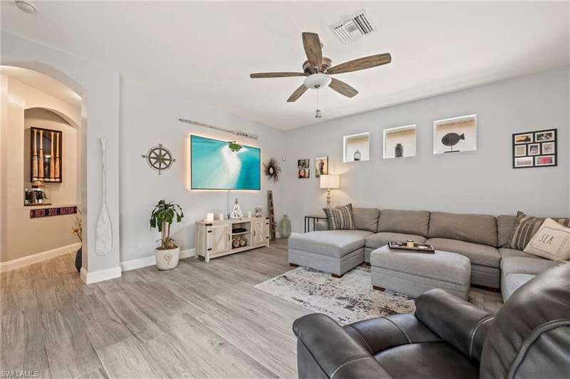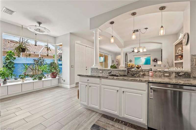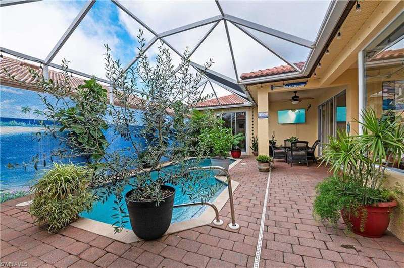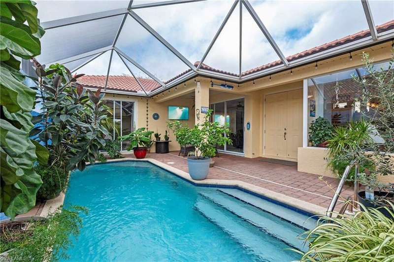 Your private Tropical Oasis awaits! Designed with privacy and entertaining in mind. Enter the home through the double doors into a flowing great room and formal dining room with tray ceiling and unique architectural details marked by arches and columns that serve to define the open of the floor plan. This lovely 3 Bedrooms/3 full Bath courtyard home boasting a newer roof, & a whole house water filtration system. Enjoy seamless indoor-outdoor living where the pool and courtyard becomes an extension of your living space and is accessible from multiple vantage points, featuring brick pavers, HEATED POOL and screened courtyard. The separate cabana has limitless options, perfect for your guests, mother in law quarters, an art studio, music room or office. The large main bedroom/bath en suite with courtyard access through sliding doors, features 2 walk in closets with custom closet organizers, large main bathroom, dual vanities and separate shower and soaking tub. Seller's are offering a 1-YEAR HOME WARRANTY!!This Courtyard Pool home is conveniently located in the gated community of Casa Del Lago. LOW HOA fees include: gated access, cable, internet, irrigation, lawn care, community pool and spa, tennis, pickleball, basketball, exercise room, and clubhouse. NO CITY TAXES OR CDD make this home the perfect Florida lifestyle choice. Casa Del Lago is located off Six Mile Cypress Between Daniels Park Way and Colonial Blvd. Only one mile north of the Six Mile Slough. Quick drive to the Interstate, shopping, airport, hospitals, Red Sox and Minnesota Twins Baseball Spring Training facilities.