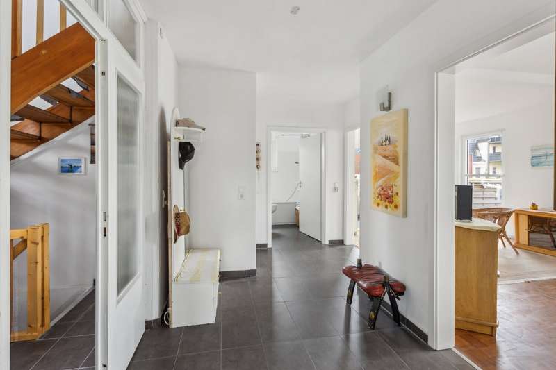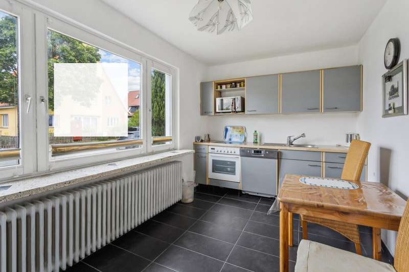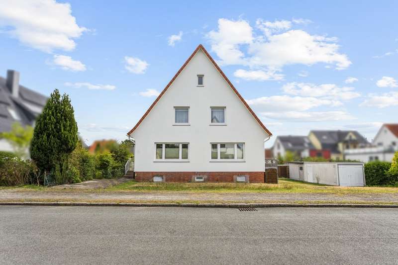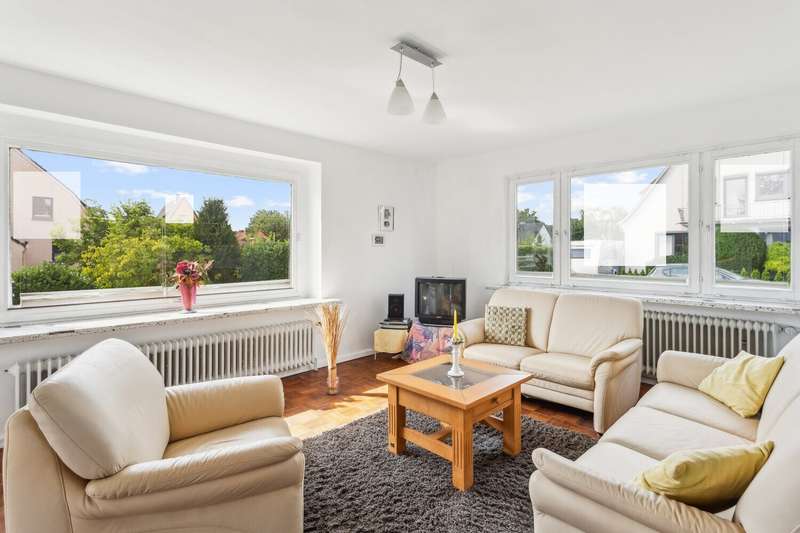This charming detached house was built in 1958 on a plot of approx. 450 m² and boasts a generous living space of around 154 m², spread over a total of six rooms. Whether as a classic single-family home or as a two-family home - the flexible usability opens up a wide range of living options for both couples and families with different lifestyles. The house impresses with its clear room layout: On the first floor is the inviting living area with fine real wood parquet flooring, which creates a special ambience thanks to its brightness and spaciousness. From here, you have direct access to the terrace created in 2018 - a successful combination of indoor and outdoor areas and ideal for relaxing in the garden. Adjacent to the living room is the kitchen, which offers enough space for modern built-in units and a dining area. Another room on the first floor is ideal as a bedroom, and the space on this level is complemented by the first of two daylight bathrooms. A comfortable bedroom and a further, modernized bathroom with contemporary fittings await you on the upper floor. The harmonious interior design creates a homely atmosphere and a high level of convenience. Large windows create pleasant lighting conditions in all rooms and offer a beautiful view of the well-tended garden area. Particularly noteworthy is the full basement of the house, which offers generous storage space as well as room for your hobbies or a study. The solid construction, typical of the year of construction, has been professionally upgraded through continuous modernization: the roof was painted in 2019 and the terrace and balcony area was modernized in 2018. Other features include a garage and an additional shed, which provides ideal storage space for garden tools or bicycles. The central heating ensures a pleasant indoor climate all year round. Overall, the building is in a well-kept and contemporary condition, making this house ready for immediate occupancy. The location offers an appealing combination of a quiet residential environment and good connections: all facilities for daily needs, kindergartens and schools are within easy reach. The neighborhood is characterized by established structures and a pleasant living environment. This detached house combines classic charm with modern living standards and is available to you flexibly as a spacious family residence or divisible residential unit. Let yourself be inspired by the many possibilities during a viewing on site - we look forward to hearing from you.