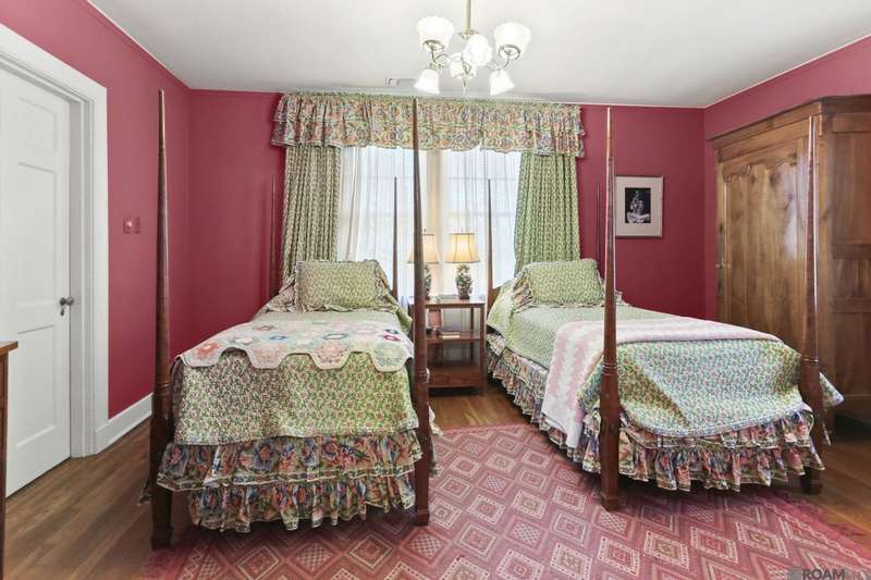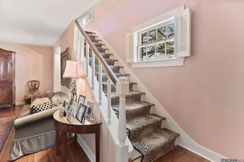 A 'Crown Jewel of College Town! Located on a large corner lot beneath a majestic oak tree, this four-bedroom three bath home blends timeless character and charm with modern comfort. This home has exceptional curb appeal with lush mature landscaping achieved overtime by Michael Hopping, landscape architect, is a vision! Guest parking leads to walkways and the welcoming entrance exuding understated elegance and sophistication. Enter the welcoming foyer into the spacious living room anchored by a warm fireplace that flows effortlessly into the dining room. The light filled sunroom/breakfast area is surrounded by windows overlooking the extraordinarily lushly landscaped backyard that creates a serene oasis. The charming, well-appointed kitchen features a freestanding Wolf range perfect for the discerning cook. The main level includes a bedroom and an office privately located and ideal for flexible living. Upstairs the primary bedroom and additional bedrooms offer comfort and privacy. Additional features include a detached 274 square-foot studio apartment and bath, a slate roof, copper, gutters, and a whole house generator. The current owner has lived in this meticulously kept home for 50 years and along with Helaine Moyse, interior decorator, have over time created something truly special. With its combination of location, character, and livability this home delivers a lifestyle of elegance, ease, and history in the heart of College Town at the gates of LSU