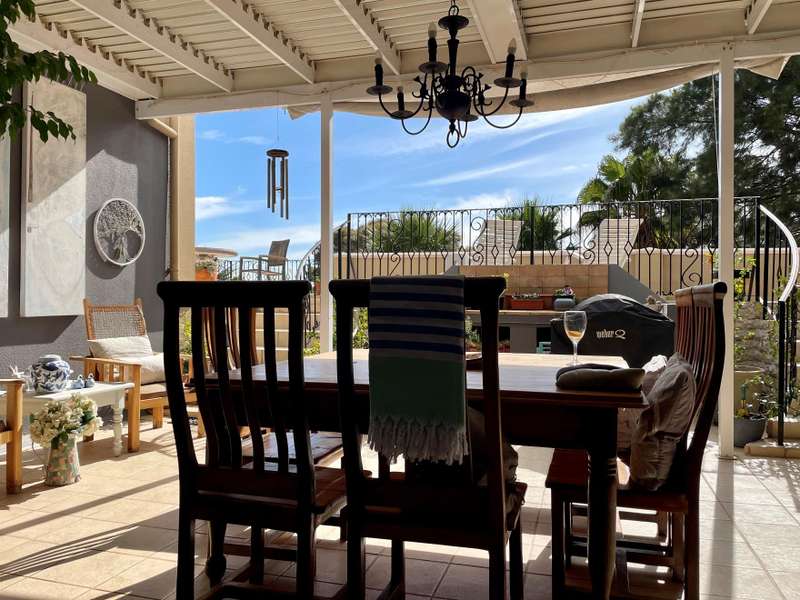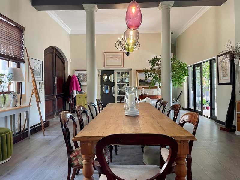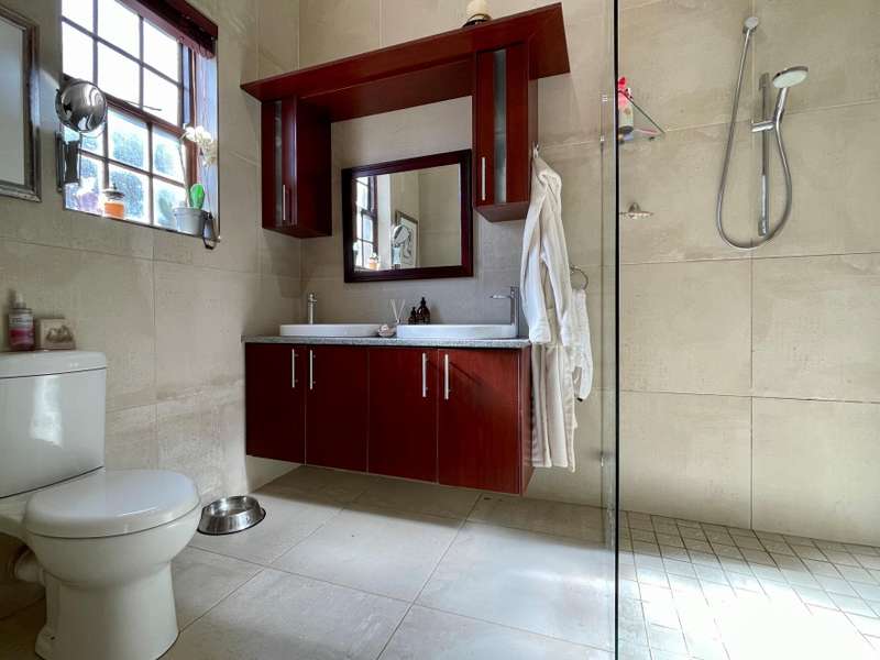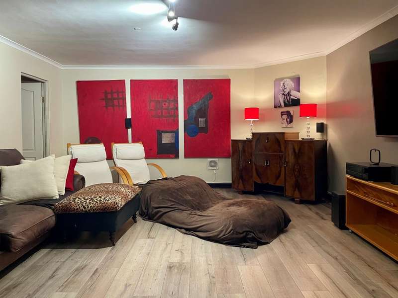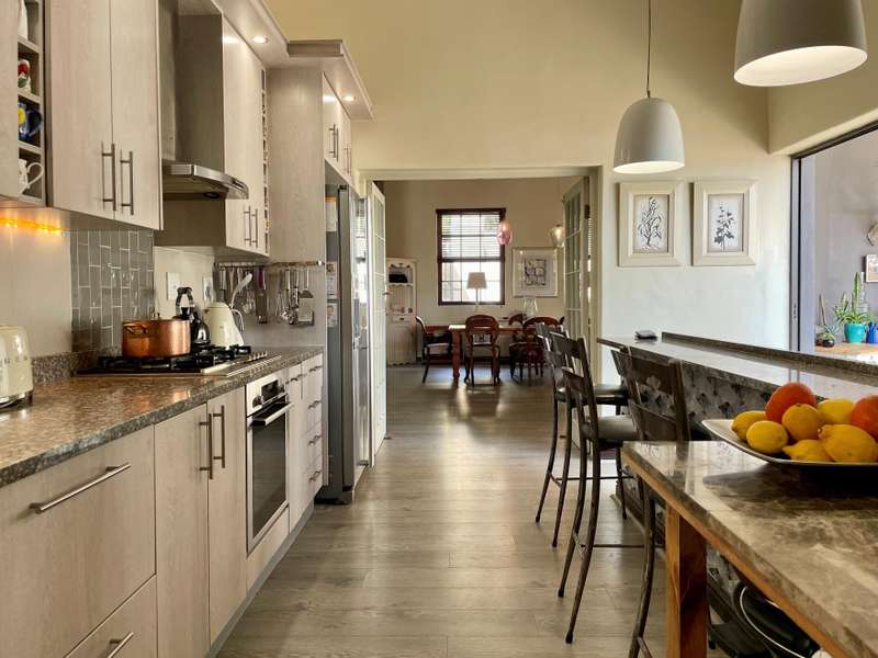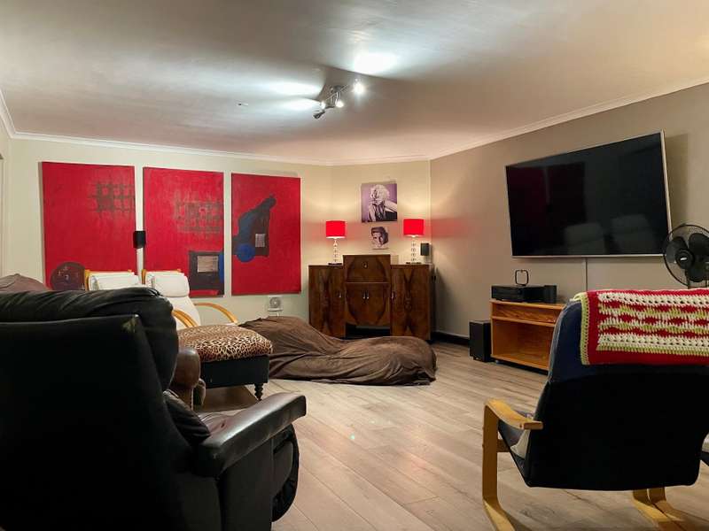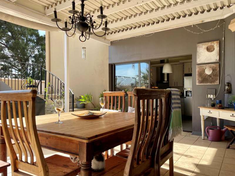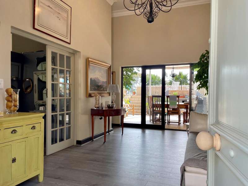 Situated high up on the mountain of Gordons Bay awaits this functional entertainers family home with rental income options. Grand entrance to open plan foyer leading to spacious dining room. Family room and Tv room lead off the dining room with guest toilet. Sun room with high ceilings and lovely mountain views. Separate kitchen with granite tops, Gas hob electric under counter oven, extrator fan, scullery and breakfast nook. kitchen leads out to covered entertainment patio with louvered roof system. Spacious main bedroom with built in cupboards, split air conditioner, en-suite bathroom and leads out to the garden. Private TV Room or recording studio just off the main bedroom. 2nd bedroom with en-suite bathroom and walk in closet. First flatlet downstairs offers a main bedroom with en-suite bathroom. Open plan lounge, dining to kitchen with doors leading to the garden. 2nd Flatlet downstairs has a main bedroom with a small kitchenette and en-suite bathroom and doors leading to the garden. Both flatlets are private and have own entrances. Dual study area with a top and bottom study landings. Double garage with direct access and loads of extra secure parking for guests. The laundry room is just below the kitchen and is equipped with a 8KW hybrid inverter system and built in cupboards. The property also has a stunning closed system fire place and built in braai area. The home is secured via an alarm system and electric fencing. Stunning sea and mountain views towards Table Mountain and Helderberg Mountain.