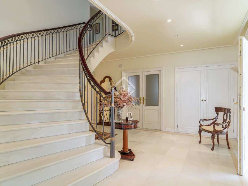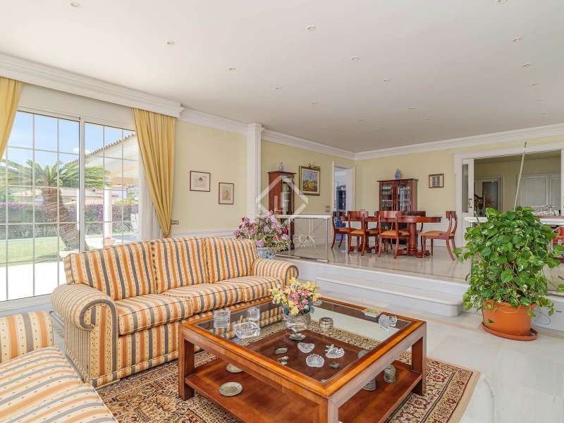 Lucas Fox presents this impressive house in Vilassar de Dalt. The property from 1993 has a constructed area of 775 m², on a plot of 1130 m². It offers a perfect combination of elegance, sea views and comfortable space for the whole family. Upon entering, we are welcomed by a spacious and characteristic entrance hall with its elegant staircase. The main floor has a living-dining room separated by a small step, which differentiates both areas, with a cozy fireplace and direct access to the garden. In addition, there is an additional adjoining living-dining room , which also has a fireplace and access to the garden. The kitchen diner is spacious and functional, with access to the summer porch, perfect for outdoor meals. On this floor, we also find a pantry next to the kitchen, a guest bathroom, a laundry room room and a staff bedroom with its private bathroom. In addition, the guest area has two double bedrooms and a bathroom. On the first floor, there is a fantastic living room with a fireplace and a terrace with sea views. The sleeping area consists of three large double bedrooms with lots of natural light, a complete and functional bathroom and finally the fabulous main bedroom, with lots of space and equipped with a dressing room, full bathroom and a magnificent solarium terrace. The ground floor houses a garage with capacity for four cars, a large multipurpose room and a machine room that facilitates home maintenance. In addition, this floor has a gym equipped with a sauna and jacuzzi, ideal for relaxing and staying in shape. The exterior of the property offers a beautiful garden that surrounds the house, with a beautiful pool. Get in touch for more information.