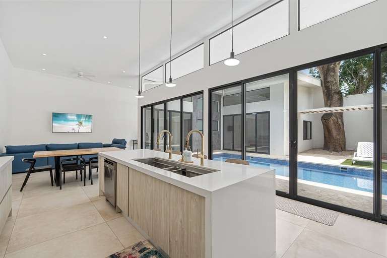 Designed for comfort, ease, and tropical style, this move-in-ready home is the perfect coastal retreat or long-term rental. The layout wraps elegantly around a 10-meter saltwater pool with night lighting, creating a seamless connection between indoor and outdoor living.