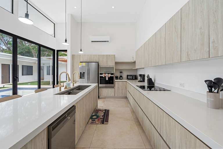 Welcome to Castillo Blanco, a brand-new 4-bedroom, 3-bathroom home located in the heart of Surfside, Playa Potrero, just a 5-minute walk to the ocean and steps from the new commercial plaza. Seller financing is available, making this beautiful property even more accessible for your coastal dreams.