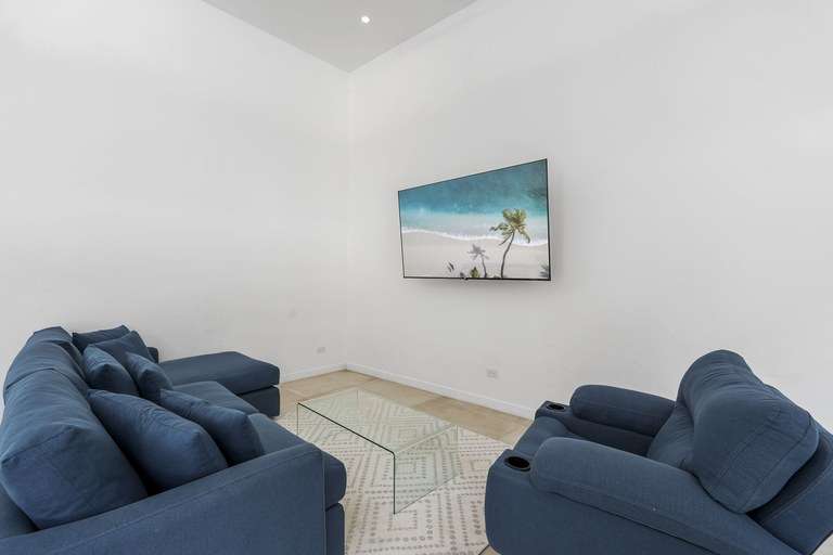 Step inside to an open-concept design featuring a chef's kitchen with an oversized island, deep sink, and all-new appliances. One of the bathrooms includes a private indoor jacuzzi tub, adding a touch of luxury to your daily routine. The spacious layout also offers a walk-in closet with brand-new laundry units, a custom dining set, and a 75-inch smart TV mounted on an adjustable wall bracket.