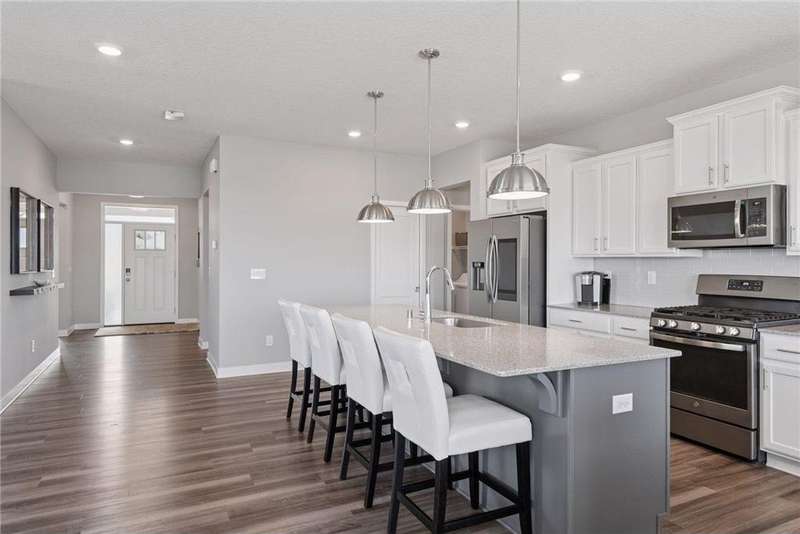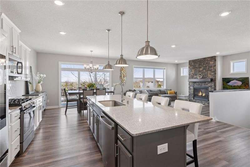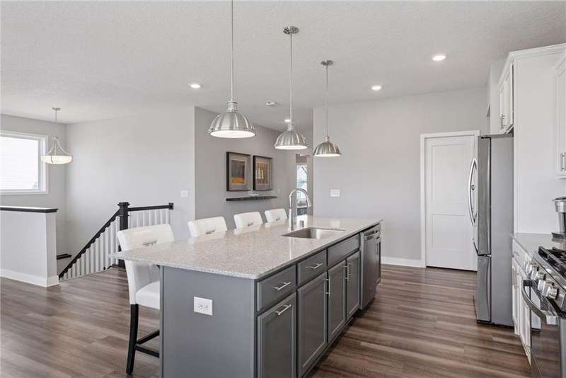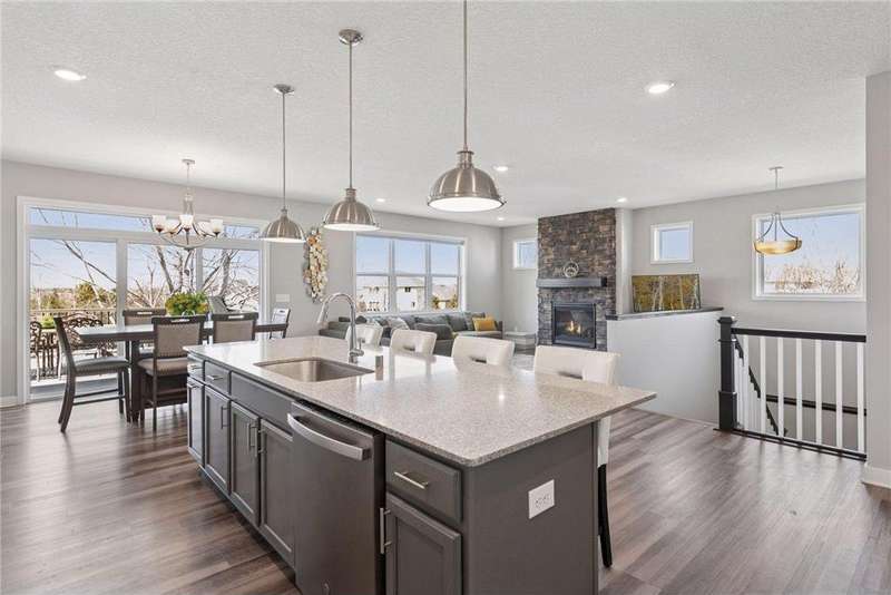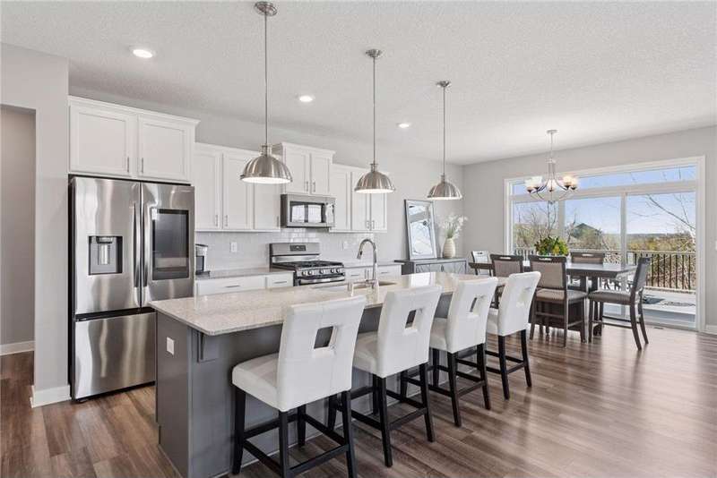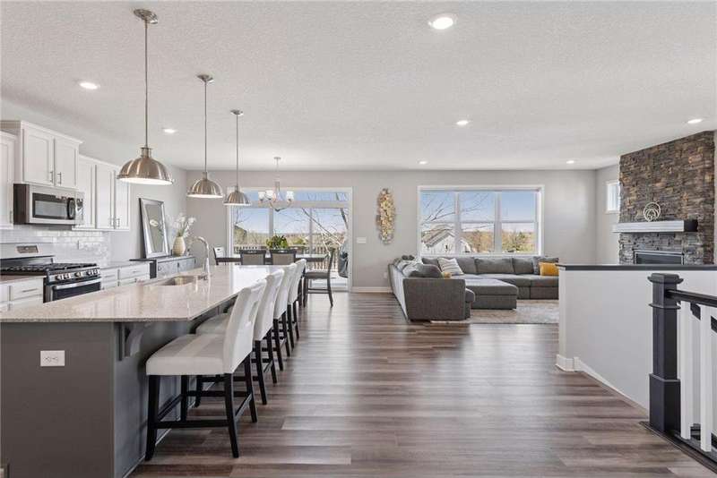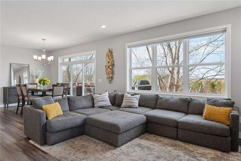 This beautifully presented one level home is a great alternative to the new build process. Open and bright with thoughtful design and generous living spaces. Nicely situated on a quiet cul-de-sac and well-positioned to take full advantage of the natural setting afforded by this walkout lot. The maintenance free deck is expansive and provides a "treehouse" feel as you're perched above the pond. Wide open main level is welcoming and ideal for entertaining. Kitchen features white enameled cabinetry, stainless steel appliances including a gas range, quartz countertops, convenient pantry, and an enormous center island with seating. All living facilities on the main level including separate laundry room with sink and a luxurious owner's suite with pampering bath and big walk-in closet with built-ins. Three bedrooms in total on the main level plus a second full bath. The lower level is built for fun and allows for multiple uses and flex spaces. Great guest accommodations, too, with fourth bedroom and third full bath, and a huge dedicated storage room. Enjoy the comforts of one level living and a maintenance-free exterior. Just two blocks from Grassman Park, which includes playground equipment, a "ninja" park, a ball diamond and big open fields. Check out the photos!