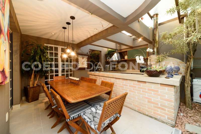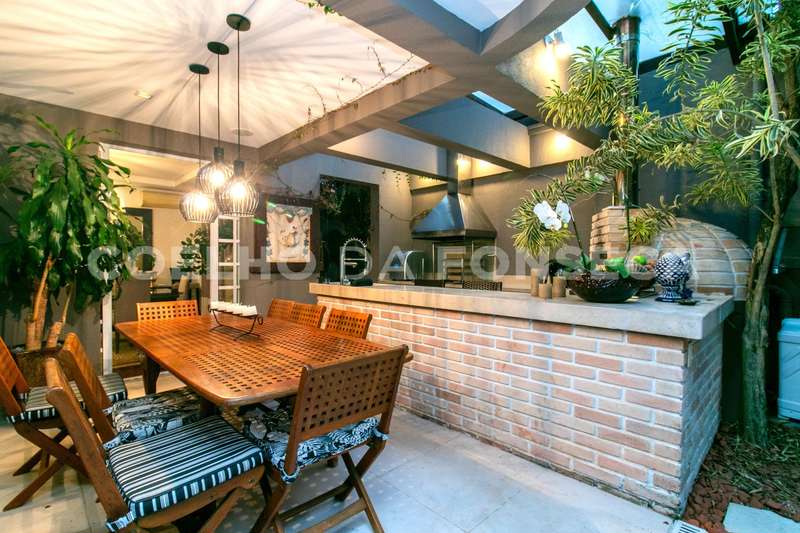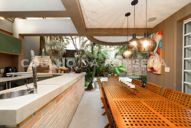 Maravilhosa casa em condomínio com excelente acabamento. Living amplo com lareira integrado ao espaço gourmet com churrasqueira e forno de pizza. Área externa com sauna, piscina e lindo jardim com paisagismo. Suítes repletas de armários planejados sendo a master com closet, jacuzzi e chuveiros duplos. Sótão transformado em área de convivência com cozinha de apoio completa, banheiro e terraço com deck e jacuzzi. Alto padrão num bairro tranquilo e arborizado, próximo à renomadas escolas bilíngues!