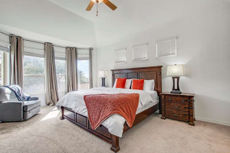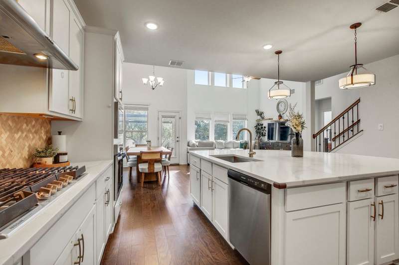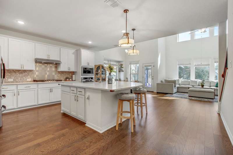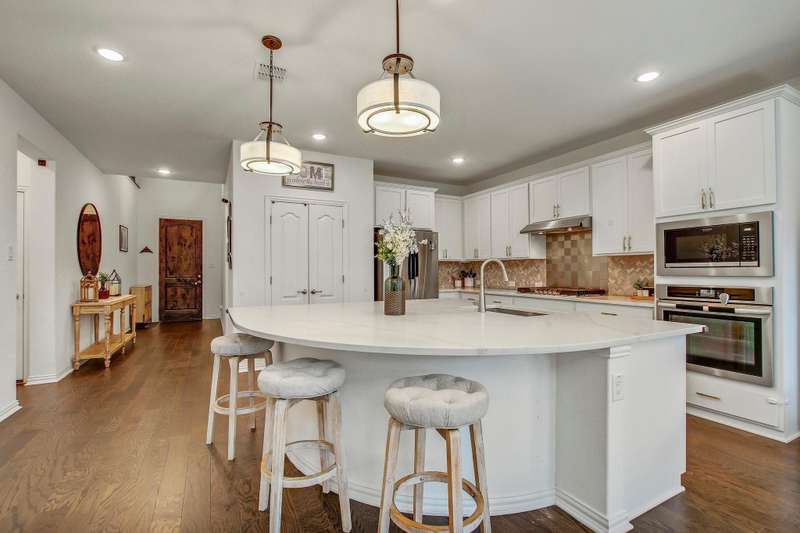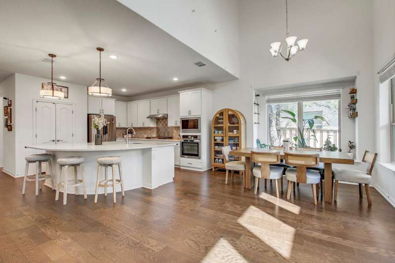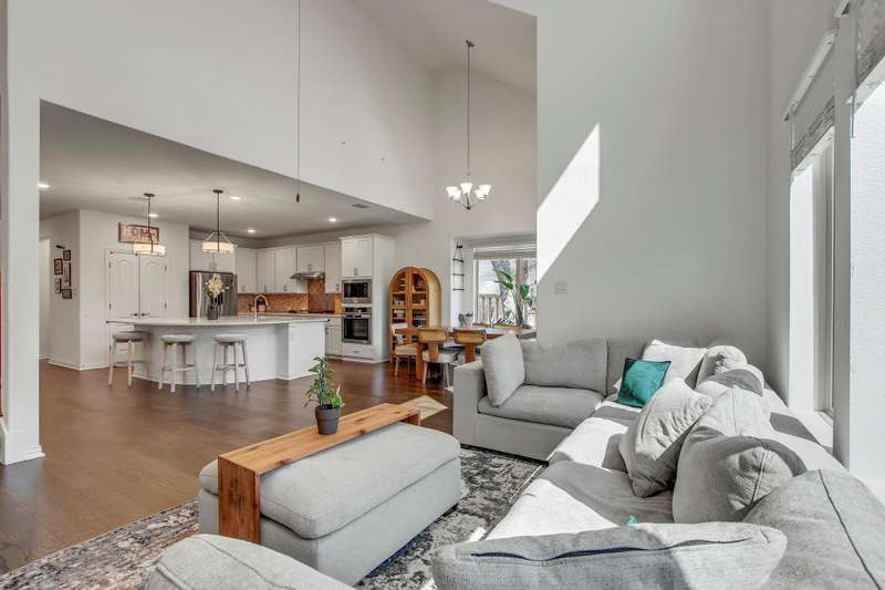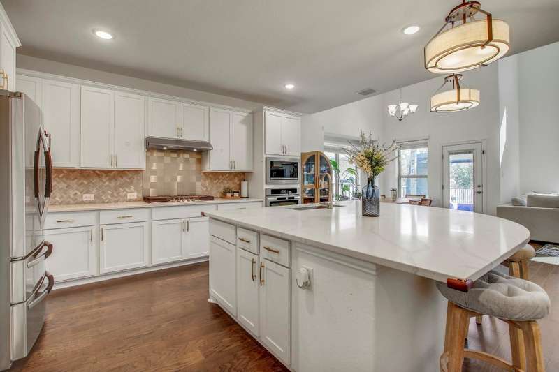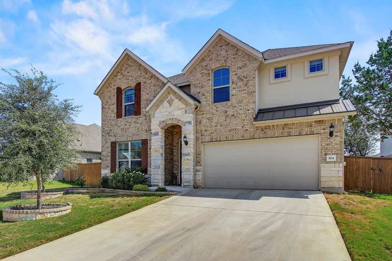 Experience the pinnacle of modern living at 104 Millbend RD, Georgetown, TX 78633 in Williamson County, a single-family residence presented in excellent condition. The heart of this home is undoubtedly the kitchen, where culinary dreams come to life amidst a backdrop of stylish shaker cabinets and gleaming white stone countertops; the large kitchen island invites gatherings and casual meals, while the backsplash adds a touch of sophisticated charm, and the kitchen bar offers a perfect spot for morning coffee, complemented by a state-of-the-art stovetop. The living room exudes an airy elegance, with its soaring high ceiling creating a sense of spaciousness and grandeur. The primary bedroom offers a private retreat, featuring an ensuite bathroom with a luxurious walk in shower. Enjoy seamless indoor-outdoor living with the thoughtfully designed outdoor living space and patio, ideal for entertaining or simply unwinding in the fresh air; the fenced backyard provides a secure and private oasis, complete with a thoughtfully established garden. The property also features a 2-garage space, ensuring ample parking and storage. With four bedrooms and three bathrooms, this 2023 build offers the perfect blend of comfort, style, and functionality. Schedule a showing today.