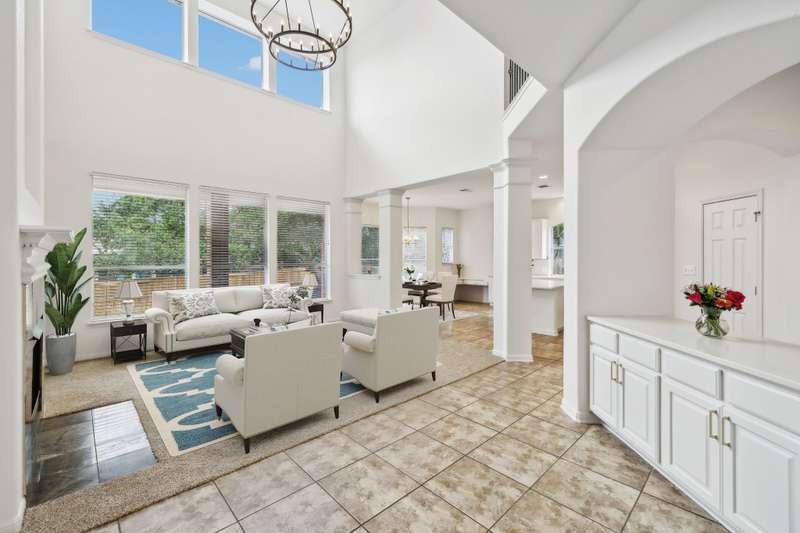 Experience luxury living in this expansive 4 bedroom/ 3.5 bathroom home plus 3 car garage, study, media & game room! Located in the exclusive gated community of the Bluffs at Two Creeks which includes a neighborhood pool in walking distance. As you step inside, you will be greeted by an open floor plan with soaring ceilings, creating a warm and inviting atmosphere. Gourmet kitchen with quartz countertops and gas cooking, custom light fixtures, gas fireplace, & covered patio great for entertaining overlooking a stunning oak tree. Primary bedroom is on the first floor with ensuite bathroom with quartz countertops, walk in closet, & a separate shower & garden tub. Three bedrooms upstairs and a huge game room & media room that could be used for additional bedrooms if needed. The 3 CAR GARAGE has room for ample storage or a workshop. Incredible location walking distance to award winning elementary school & neighborhood pool! Minutes from HEB, shopping, La Cantera, golf, and the Dominion Country Club! - 10/4/2025 3:15:22 AM