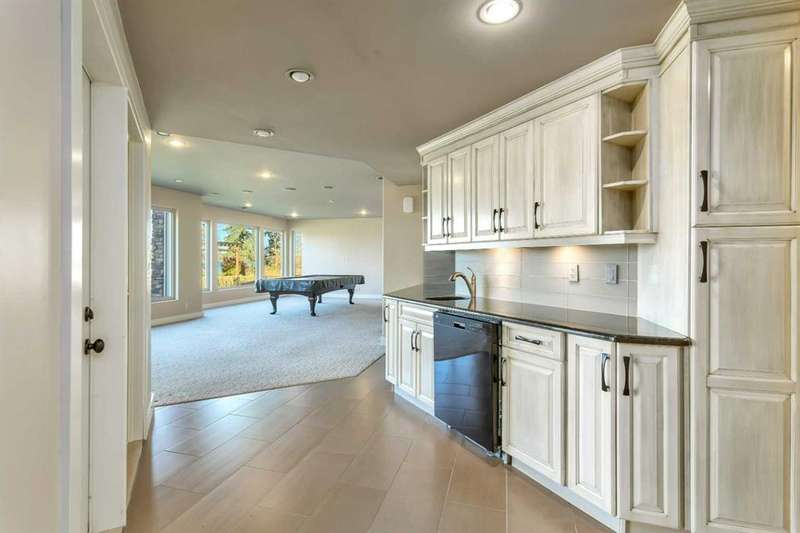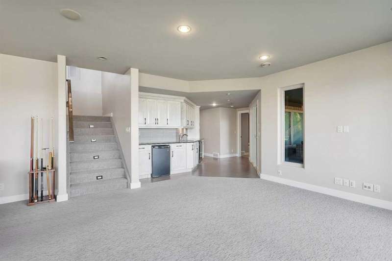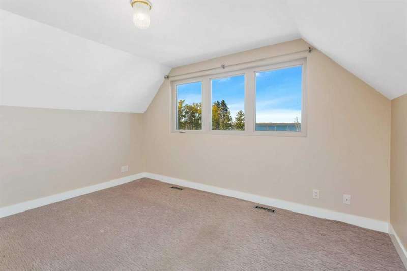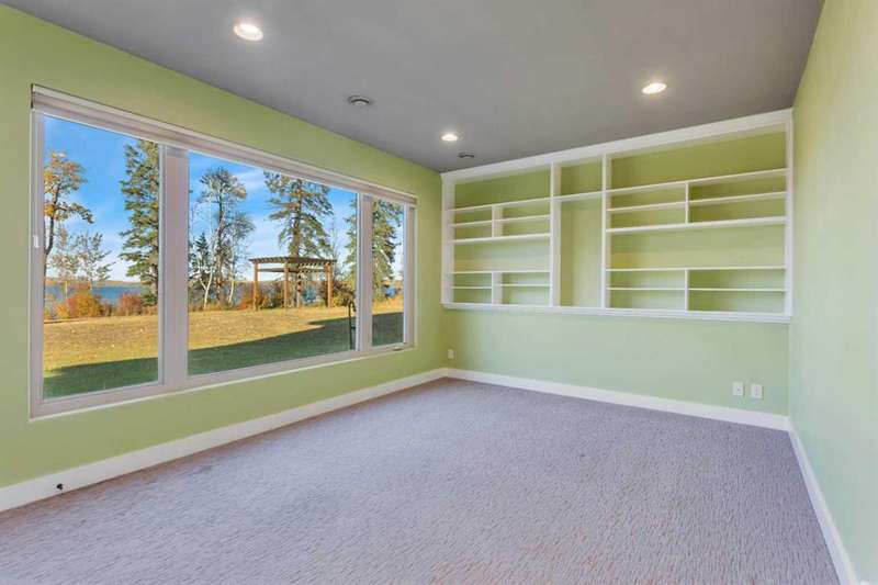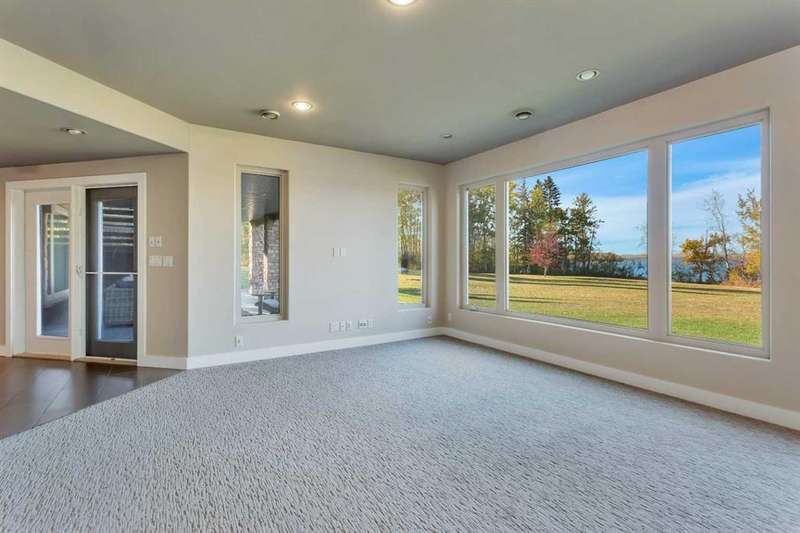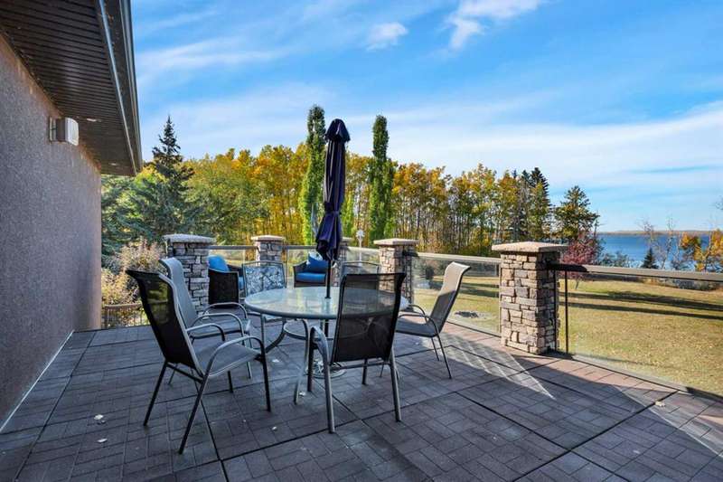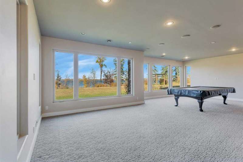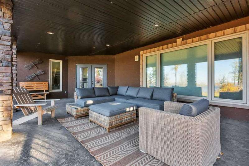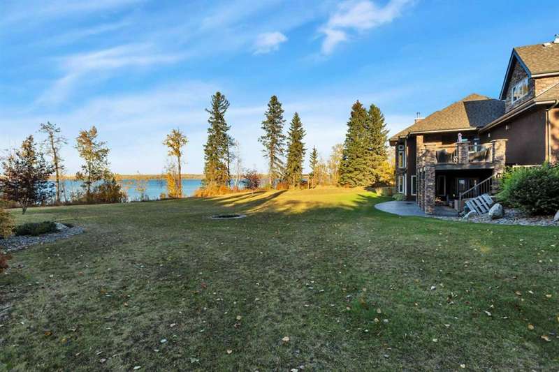A rare opportunity to own an exceptional lakefront estate on 74 acres of prime Alberta countryside. This prestigious walkout bungalow offers an unmatched blend of luxury, privacy, and natural beauty, all with Riparian water rights. Located on 22108 Township Road 392 in Lacombe County, this residence exudes timeless elegance with custom finishes and breathtaking lake views throughout. Step inside to a chef-inspired kitchen, complete with granite countertops, custom cabinetry, and a layout designed for both daily living and entertaining. The expansive living room features coffered ceilings, a grand marble-faced fireplace, and floor-to-ceiling windows that showcase unobstructed water views. The primary retreat is a sanctuary of its own, with built-in cabinetry, panoramic lake-facing windows, a spa-inspired ensuite with walk-in shower, and an impressive walk-in dressing room. The lower level is built for entertaining, boasting a wet bar, spacious family room, and walk-out access to a covered patio, creating seamless indoor-outdoor living. Three large bedrooms downstairs offer comfort and scenic views. An additional finished space located above the garage provides extra flexibility for guests or workspace. Note: The secondary residence on the property is not part of the listing. Please do not access this area and respect all privacy signage during showings. Whether you're dreaming of a private retreat, family estate, or a legacy property, this home offers unparalleled lifestyle potential.