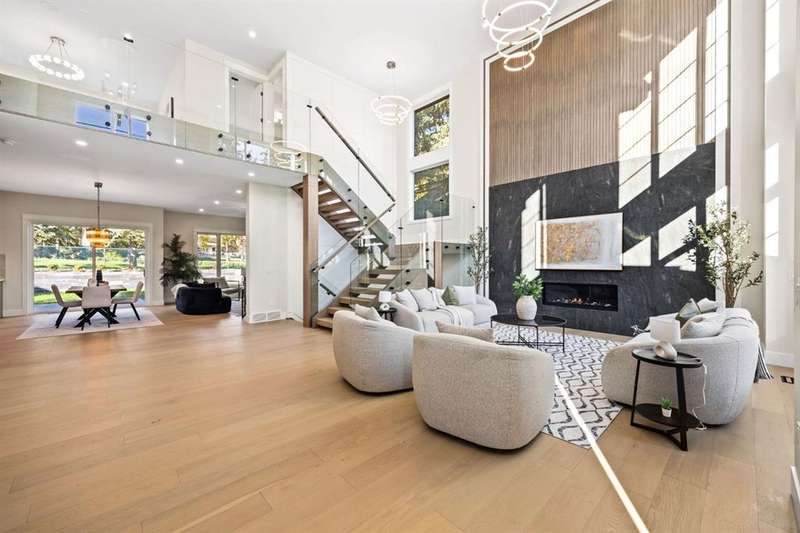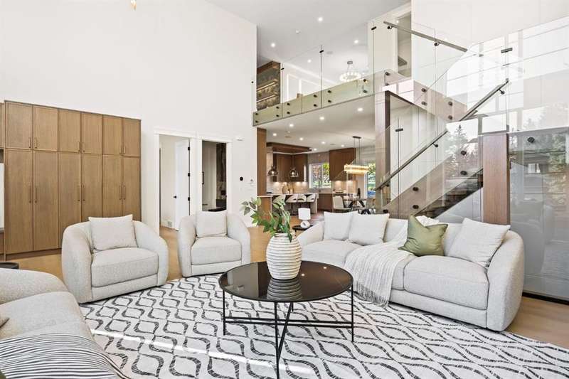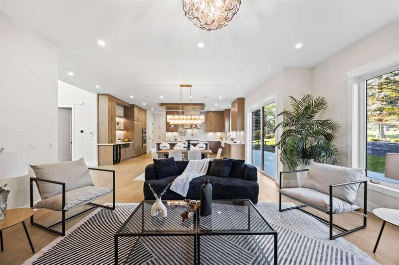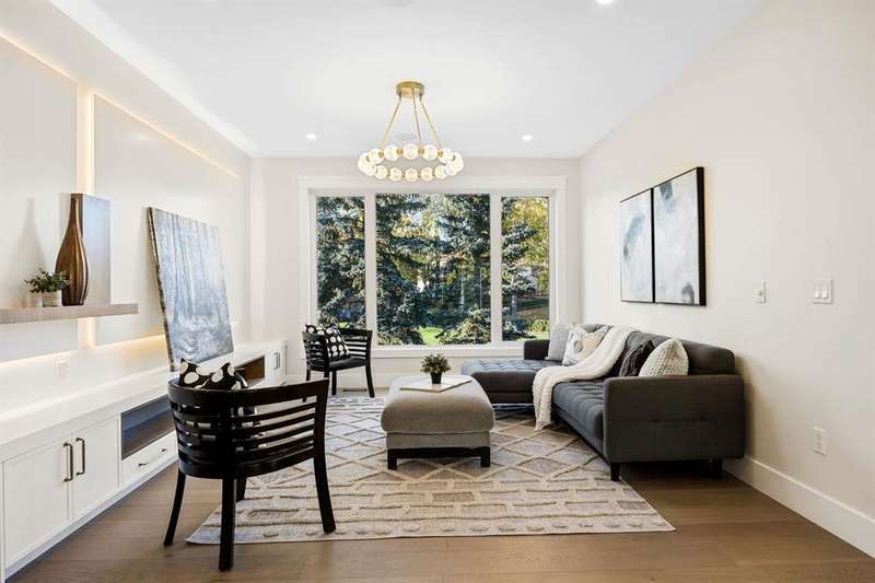 "OPEN HOUSE 12PM-3PM Sunday 26 October " Welcome to this extraordinary, brand-new custom estate home, perfectly positioned in the highly sought-after community of Varsity Estates. Backing directly onto the golf course, this residence offers breathtaking views of the fairways from nearly every principal space, including the kitchen, dining room, master suite, guest bedroom, family room, bonus room, and the beautifully landscaped backyard. From the moment you enter, you’re greeted by soaring open-to-above ceilings, modern glass railings, and designer chandeliers that create an immediate sense of elegance and grandeur. The thoughtfully designed floor plan offers both formal and casual living spaces, featuring a sophisticated living room and a warm family room, each highlighted by its own fireplace. At the heart of the home is a gourmet kitchen equipped with premium JennAir appliances, a convenient coffee bar, and an expansive island perfect for entertaining. Seamlessly connected dining and living areas provide an ideal setting for gatherings, while expansive windows frame stunning golf course vistas. This residence features 4 generously sized bedrooms and 5.5 bathrooms, including a luxurious master suite with panoramic views, a spa-inspired ensuite with heated floors, steamer in shower and a custom walk-in closet. Additional highlights include an executive office, home gym, theatre room, and a wet bar designed for elevated entertaining. Luxury is in every detail—heated washroom floors, central air conditioning, and high-end lighting throughout. Practicality meets modern convenience with 200-amp electrical service, EV charger readiness, and a triple heated garage with epoxy flooring. Blending contemporary architecture with timeless finishes, this Varsity Estates masterpiece offers more than just a home—it delivers an unrivaled lifestyle in one of Calgary’s most prestigious communities. Book your Private Tour now.