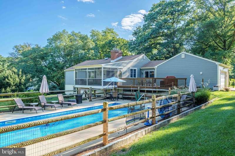 Nestled in the serene community of Corner Ketch Farm, this charming ranch-style home offers a perfect blend of comfort and functionality. Spanning 2,400 square feet, on a generous 0.83-acre lot, surrounded by lush trees and a beautifully landscaped yard. The outdoor space features a deck and porch, perfect for enjoying morning coffee or evening gatherings. A private pool invites relaxation and fun during warm summer days. With an attached two-car garage providing inside access and ample driveway parking, convenience is at your fingertips. Recent updates include, Septic System (2009), Deck (2022), Siding & Gutters (2022), Pool Liner (2022), Chimney Cap (2023), Roof ( 2023), Driveway (2023), Master Bathroom (2023) This home is not just a place to live; it's a sanctuary where memories are made. Experience the perfect blend of indoor comfort and outdoor tranquility in this delightful property. This home just recently was independently appraised at 600k. Appraisal is attached.