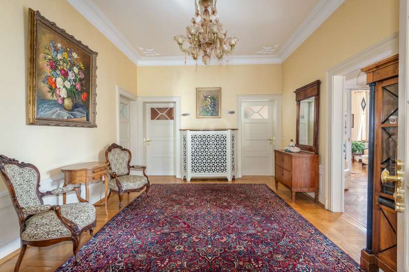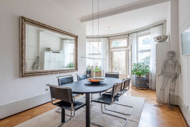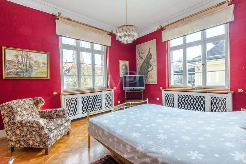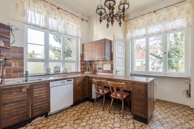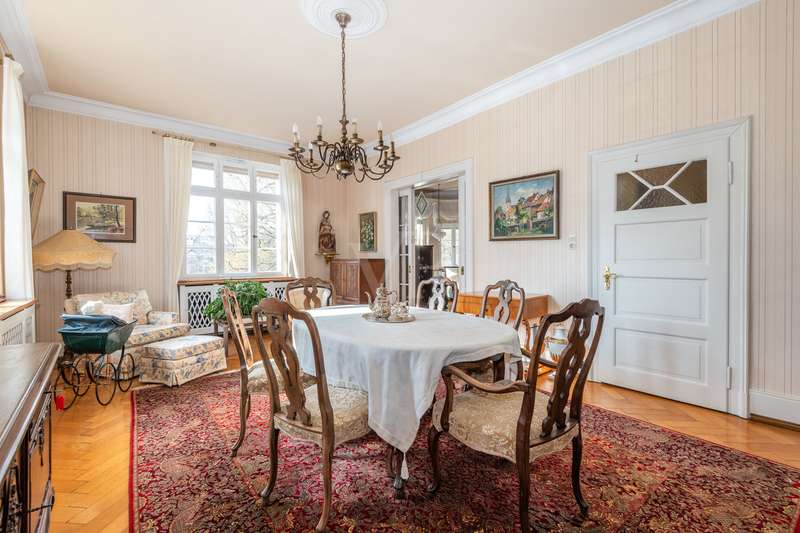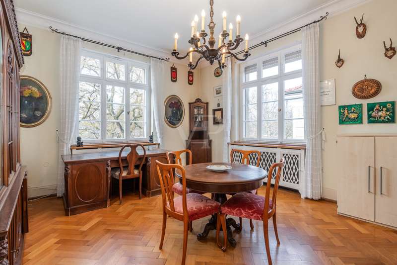 Rarity: Historic town villa with garden This impressive and historically significant villa from 1924 is situated on a plot of around 748 m² and, with 3 residential units and a living space of approx. 450 m², offers generous space for a wide range of possibilities. The listed property impresses with its two-storey construction, an extended hipped roof with dormers and architectural details such as exposed stone and plastered surfaces. A central, semi-circular porch and a surrounding relief frieze add further visual accents. Internally, the villa impresses with a total of 15 rooms spread over three floors, spacious, light-flooded living areas that offer plenty of design freedom. Three bathrooms provide ample comfort in this spacious residence. The living space is fitted with high-quality real wood parquet and tiles. The ceilings with stucco decorations lend the rooms a special atmosphere and additional charm. There are also stylish, elegant wooden and glass sliding doors and aluminum shutters, some of which can be operated manually. The property is in a very well-kept condition and in need of energy renovation, which offers future owners the opportunity to modernize it according to their own ideas and current standards of furnishing. The heating system was extended in 2006 with a gas central heating system on the first floor. The box-type windows can be opened with a double frame, which facilitates the renovation to new window standards and contributes to improved energy efficiency. The outdoor area of this villa includes a well-kept garden, which offers an increased level of privacy thanks to its enclosure. A balcony and a loggia extend the living spaces outside and offer additional opportunities to relax. A garage with electric door drive is available for vehicles, ensuring convenient and secure parking. Due to its location and history, this property represents a special opportunity for lovers of special properties who appreciate the potential of this urban villa and wish to further develop this unique property with a personal touch. Be inspired by the history and potential of this villa. The condition of the house allows you to add your own touches and give the building a new shine. A viewing on site not only gives an authentic impression of the room layout and furnishings, but also reveals the many possibilities for individual design. Please contact us for further information or to arrange a viewing.
