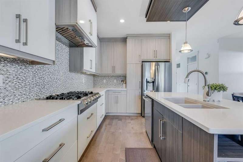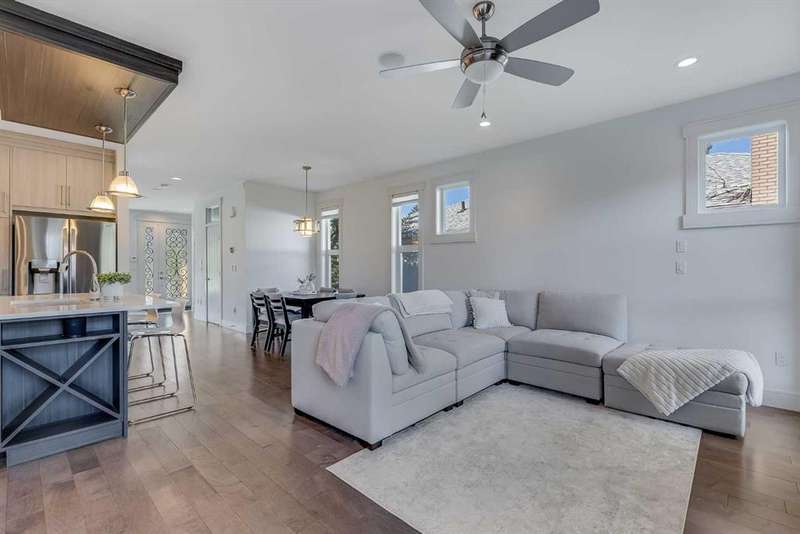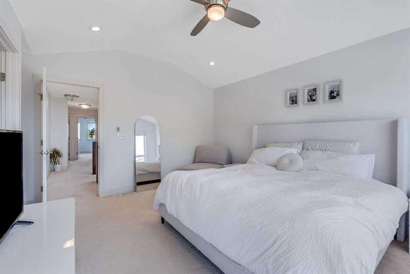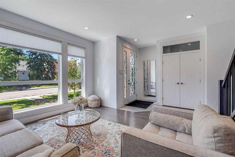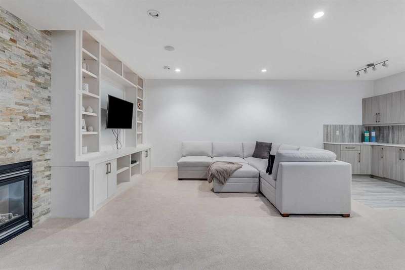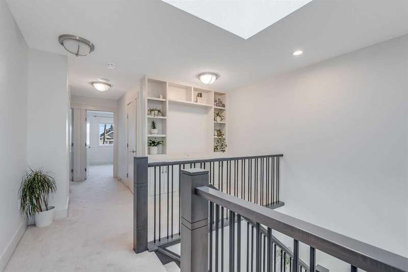 Welcome to this modern home in Mount Pleasant, just steps from Confederation Park and minutes to DOWNTOWN, U of C, and SAIT. With OVER 2,800 SQ. FT. of beautifully designed living space, this property blends style, comfort, and functionality. The main level is bright and open, showcasing WIDE PLANK HARDWOOD floors, a dramatic OPEN-RISER STAIRCASE, and a stone-accented fireplace. The chef’s kitchen is equipped with sleek cabinetry, QUARTZ counters, a 6-burner GAS COOKTOP, built-in wall oven, and a large island with wine storage, perfect for everyday living and entertaining. Upstairs, the VAULTED primary retreat offers a PRIVATE BALCONY, custom walk-in closet, and SPA-INSPIRED ENSUITE with dual vanities, a JETTED TUB, oversized rain shower, and skylights. Two additional bedrooms share a full bath, while an OPEN DEN WITH CUSTOM BUILT-IN CABINETRY creates an ideal home office or study space. A convenient LAUNDRY ROOM WITH SINK completes this level. The FULLY DEVELOPED BASEMENT extends your living space with a second fireplace, BUILT-IN MEDIA SHELVING, a WET BAR with beverage fridge, a fourth bedroom, and a luxurious STEAM SHOWER. Outside, the sunny, LANDSCAPED BACKYARD offers the best of inner-city living with enough outdoor space to relax, entertain, and garden, a rare combination of privacy and space so close to it all. The detached DOUBLE GARAGE is insulated and drywalled, while CENTRAL AIR CONDITIONING ensures year-round comfort. This coveted location provides access to TOP SCHOOLS, the winter club, golf, shops, cafes, and an easy commute to DOWNTOWN. Do not miss your chance to enjoy the perfect balance of high-end design and everyday practicality. Book your private showing today.