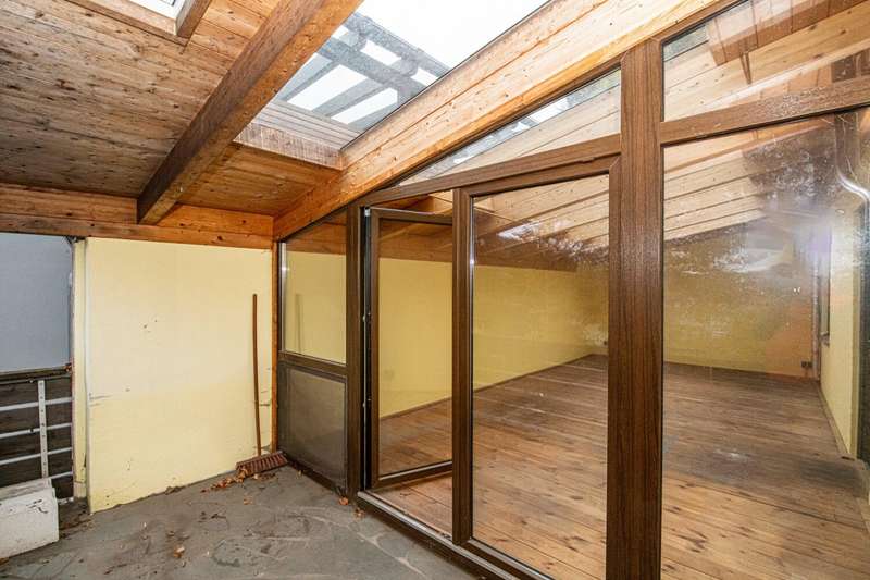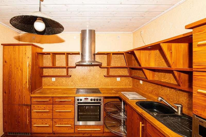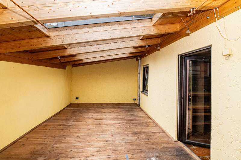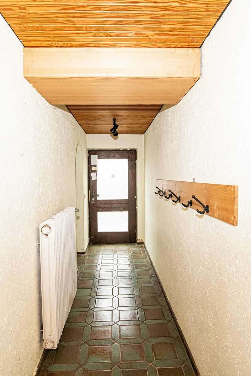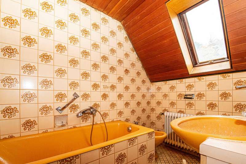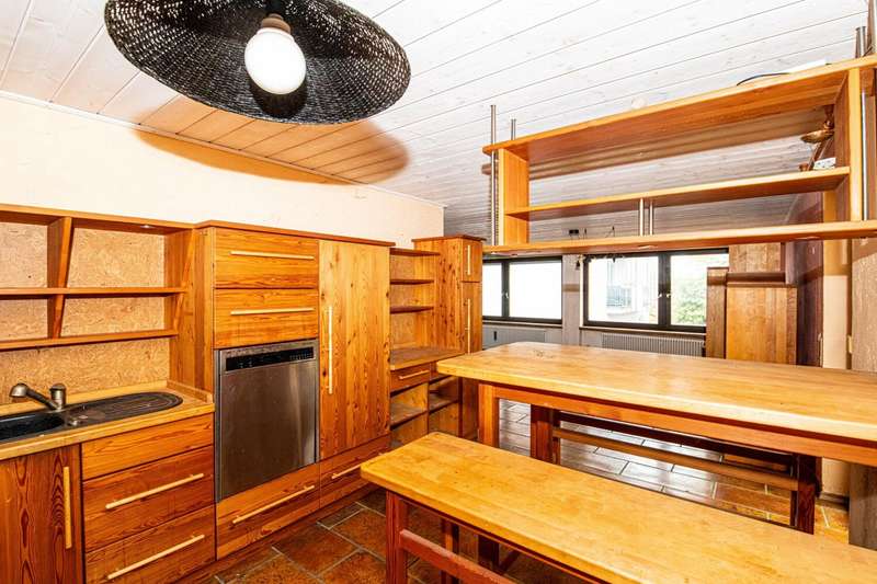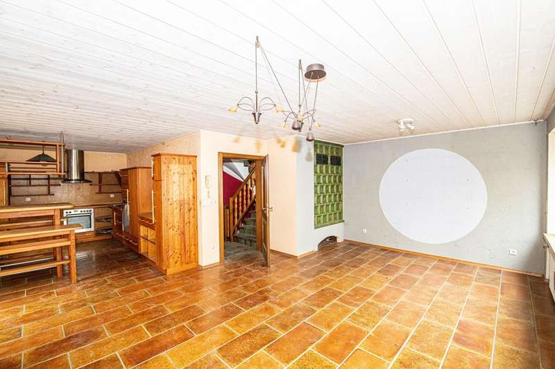 For sale is a detached house built in 1973, which is characterized by a living space of approx. 101 m² and a plot size of approx. 109 m². The house is situated in a quiet residential area and offers a balanced combination of functionality and comfort. The residential building has a total of three rooms, two of which can be used as bedrooms. The room layout is open and allows for flexible usage options. The central living and dining area is flooded with natural light via large windows and creates a pleasant living atmosphere. There is also a traditional tiled stove here, which provides a cozy room climate on cool days and sets a special accent. The furnishings are of a solid and well-kept quality. Most of the floors are covered with parquet, giving the interior a timeless character. Two modern bathrooms are available and offer sufficient comfort for family or guests. Heating is provided by central oil heating, supplemented by a powerful PV system, which contributes to energy efficiency and reduced operating costs. A particular highlight of this property is the spacious, covered terrace with direct access from the living area. It offers excellent opportunities for sociable evenings or relaxing hours outdoors, protected from the weather. Other features include two garages, which are directly adjacent to the property and offer ample space for vehicles or additional storage space. The central location ensures good connections to the local infrastructure. Shopping facilities, schools and doctors are just a few minutes away. Good accessibility to public transport and a pleasant neighborhood also characterize the surroundings. This detached house is particularly interesting for couples or small families who value a well thought-out room layout and a pleasant living atmosphere. The combination of energy-efficient building technology, classic construction methods and a clearly structured floor plan makes this property an attractive living solution. For further information or to arrange a viewing appointment, please do not hesitate to contact us at any time. Take the opportunity to get to know this well-kept house in person. We look forward to hearing from you.