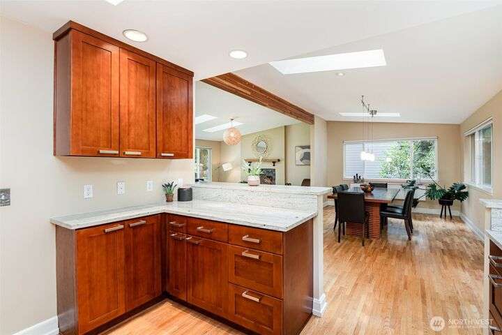 Elevate your expectations in coveted Beaux Arts! Combining modern upgrades, community amenities & prime location, this thoughtfully updated home offers a truly exceptional lifestyle. Your 5BD, 3 bath home features main living area w/vaulted ceilings & skylights, renovated kitchen w/newer appliances & large dining area overlooking beautifully landscaped yard. Generously sized guest beds & spacious primary suite w/updated bath round out the main level. Lower level provides additional gathering space, guest bed, home office/bed & ample storage. Enjoy access to private beach spanning 1100' of Lake WA waterfront, moorage, tennis & pickleball courts, play area & trails. Bellevue schools, car charger, plus new furnace & heat pump.Pre-inspected!