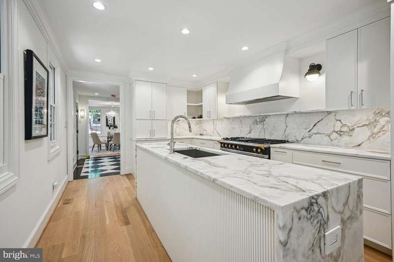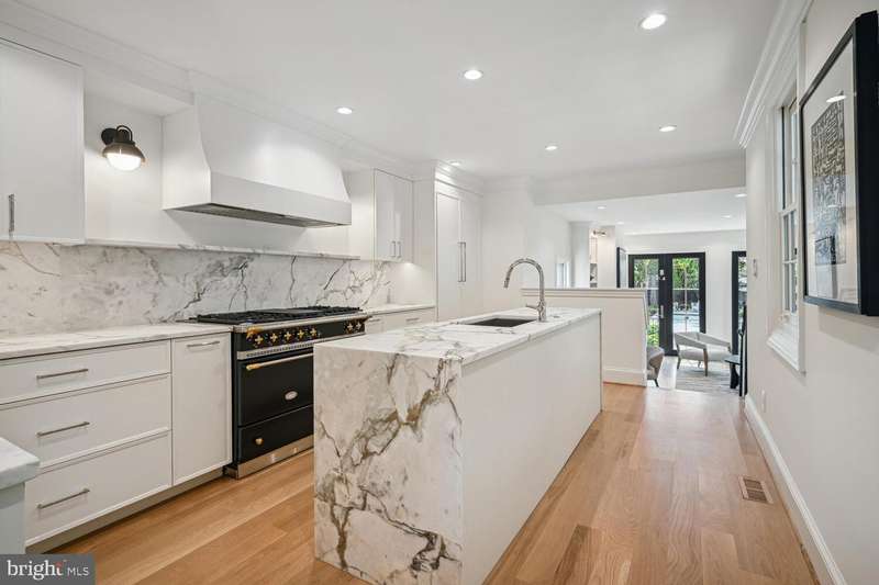3418 Reservoir Rd is a fully detached historic home that has been completely gut-renovated, extended, and dug out to maximize ceiling height. Located in Georgetown's West Village, this property is the largest lot on the block and has a POOL. An elegantly fresh interior, from M.S. Vicas Interiors, with high-end finishes: Lacanche range, Waterworks, gorgeous-honed marble kitchen counters and backsplash, white oak flooring, Ann Sacks marble tile in the foyer, custom cabinetry and millwork. 4 beds, 4 total baths + an office, formal dining, living room, and family room. Washer/dryer on the second level and laundry room in the lower level. Phenomenal indoor-outdoor flow with tons of natural light and great sight lines. The lower level is bright and airy with windows facing west and south. All new landscaping and hardscaping from Richardson & Associates Landscape Architecture and Serra Stone. Beautiful mature trees. Enjoy the side porch, back deck, pool, fire pit -- entertain and relax. Secure garage parking included at buyers request or parking space available one block away. Be the first to live in this historic-new home!