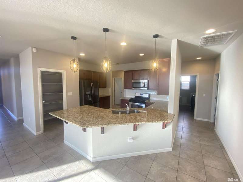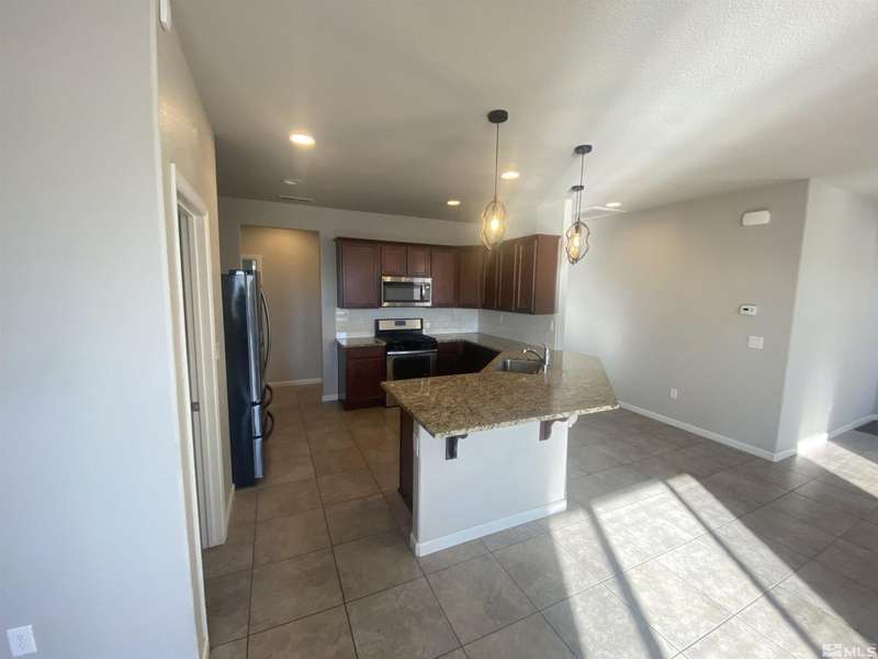 3 bedroom 3 baths 3 Car Garage Kitchen and living room combo. Kitchen features all stainless steel appliances refrigerator, dishwasher, gas range and built in microwave. Granite countertops, huge living room with gas fireplace. Laundry room with a washer and dryer. Master bath has garden tub, double sinks and separate shower. Large walk in closet.