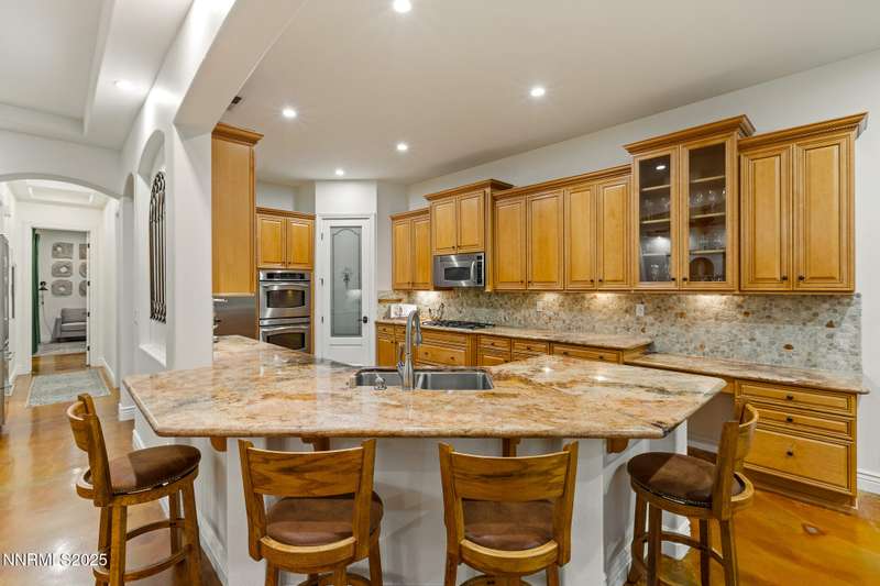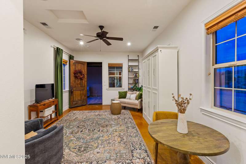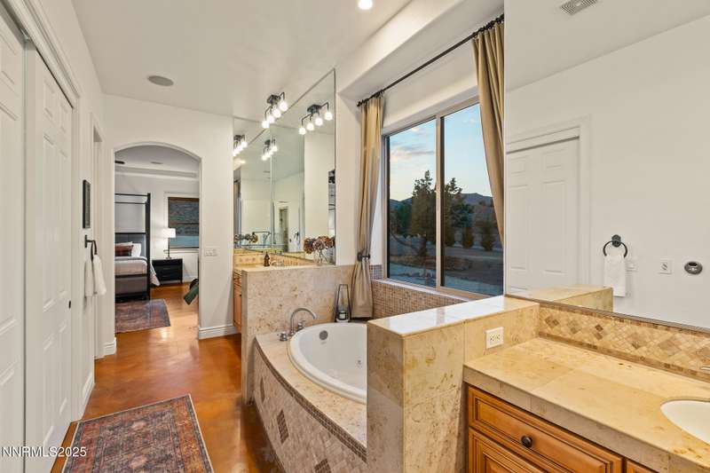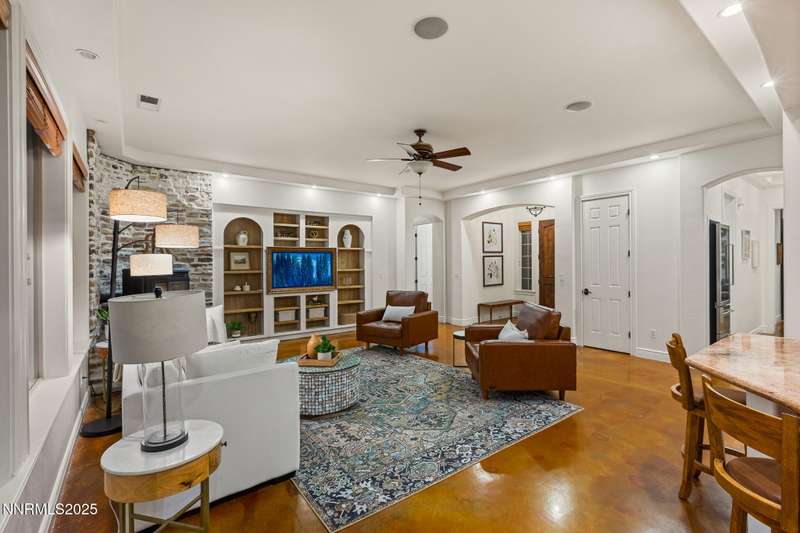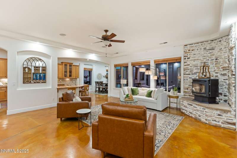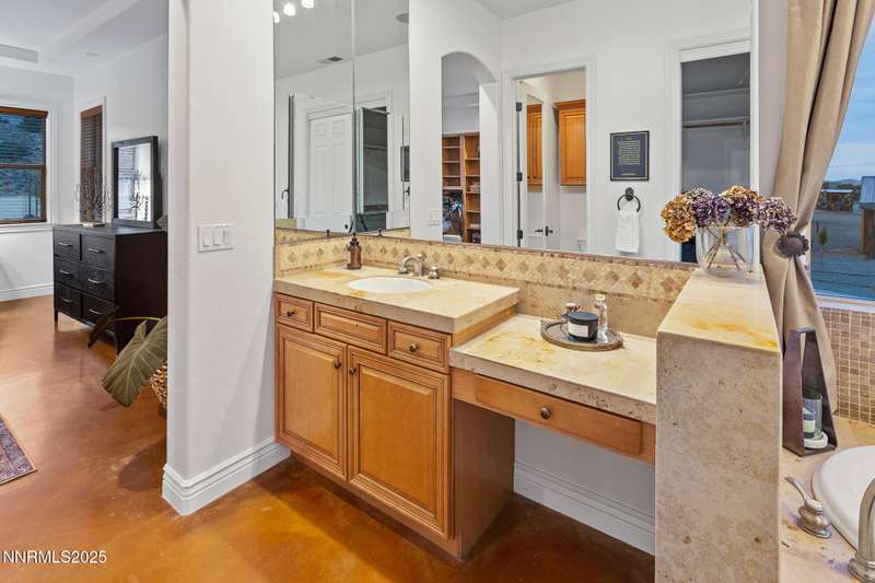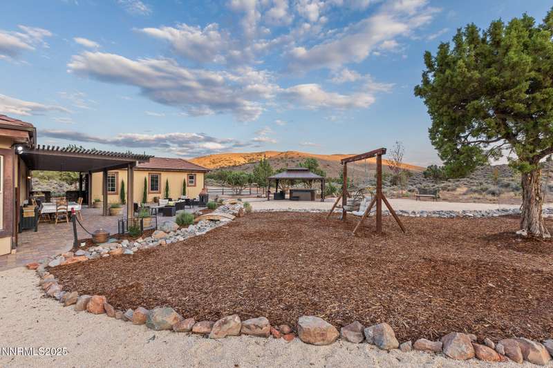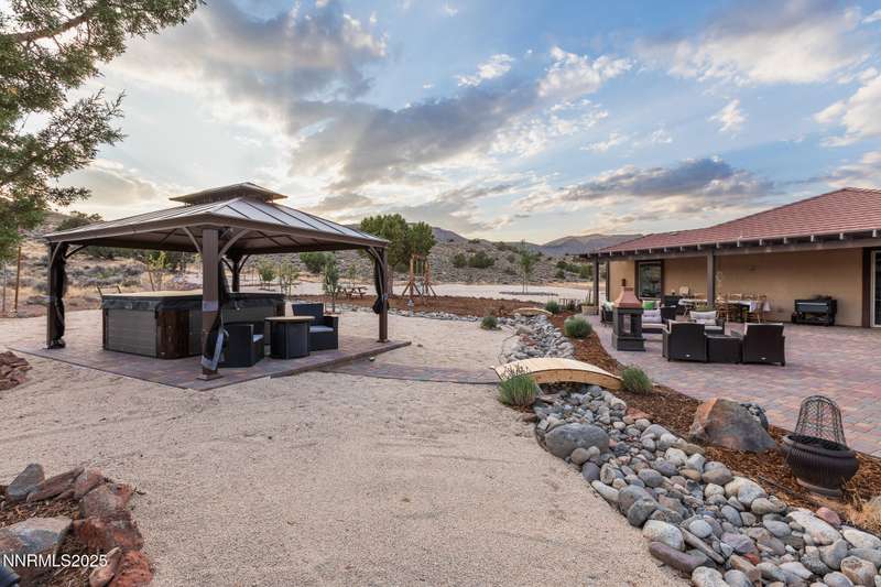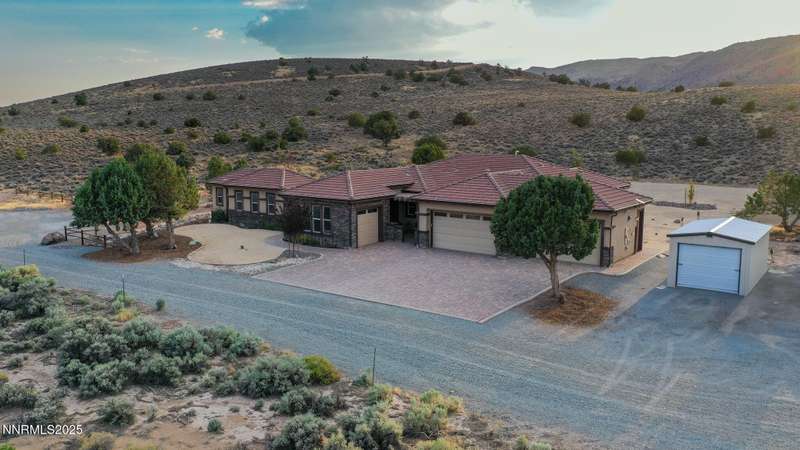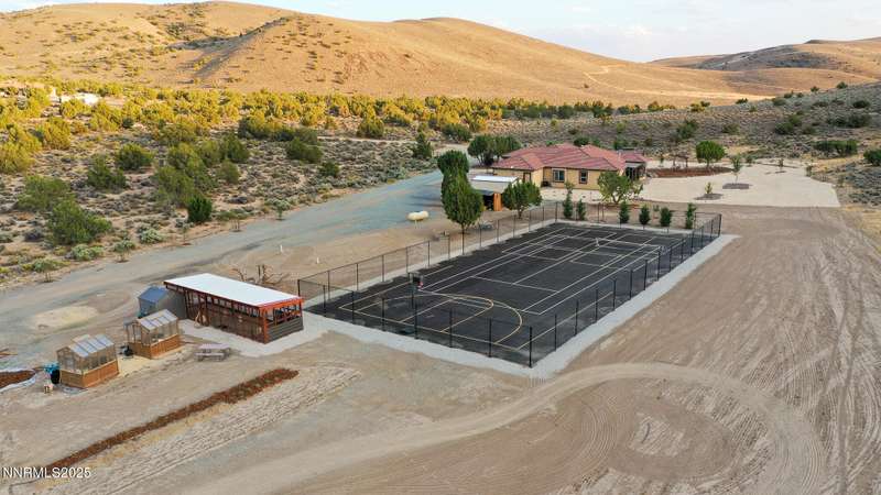 A taste of Italy awaits! Nestled on a serene 45+ acre estate, this custom-built, single-story home is Exceptionally Private being surrounded by picturesque mountains! With 2701+-sq ft. which includes a charming, detached Casita/in-law suite for additional privacy, Plus a 5-Car Garage. The gourmet kitchen is a chef's dream w/ slab marble, high end GE Monogram appliances, including a 48" built in fridge, double ovens, 5 burner gas stove, solid wood cabinetry, walk in pantry, large eating bar & an adjacent dining area spacious enough for 8 w/ sweeping mountain views! Relax and unwind in the expansive living room, under tall ceilings, where custom built shelving adds a modern look. Large bright windows throughout the home invite an abundance of natural light and frame the pleasing views. Your Primary suite offers a spa-like bathroom featuring a jetted soaking tub & separate steam shower to relax and rejuvenate. The unique stained concrete floors are an unexpected flare throughout & help keep the home naturally cool during hot summer months. Wait until you see the grounds! Between the Casita and the house, you'll find an expansive paver patio with a covered hot tub, outdoor dining table, perfect for meals under the star filled skies. Tennis, Pickle Ball or Basketball enthusiasts? Enjoy your Professional fenced Outdoor Sport Court! Ensuring fun for everyone. The estate also boasts over 25 fruit trees-including cherries, apples, pears, peaches, plums & grapes-along with 2 greenhouses equipped w/ water/electric, extra-large chicken run/coop & multiple outbuildings. The wide-ranging land offers ample room for a large arena, barn, or equestrian set up. Whether you are envisioning a boutique farm or a hobby ranch, this property can accommodate it all! If you are ready to leave the fast pace behind and embrace the tranquility of this exceptional property, this is the perfect place to start your next chapter. Schedule a visit today & discover why this stunning estate could be your perfect new home.