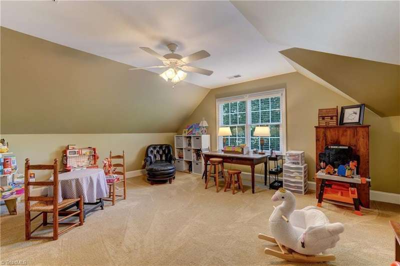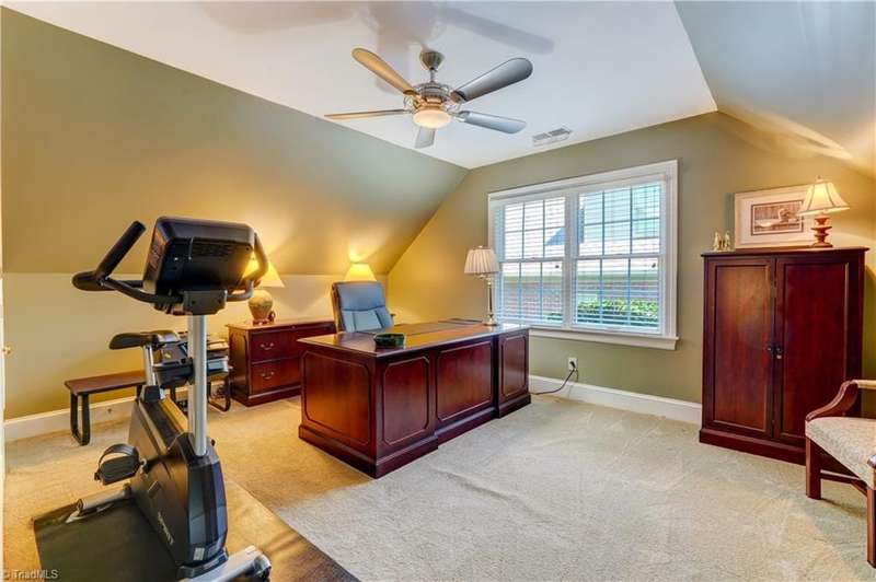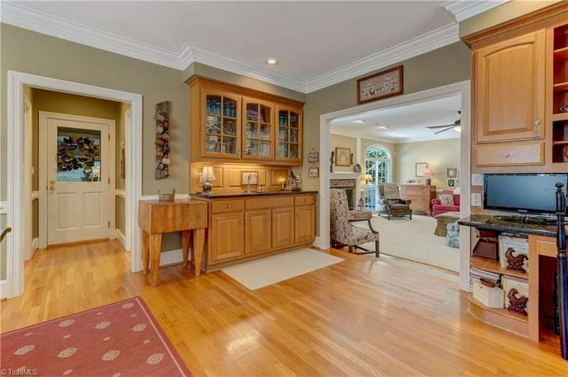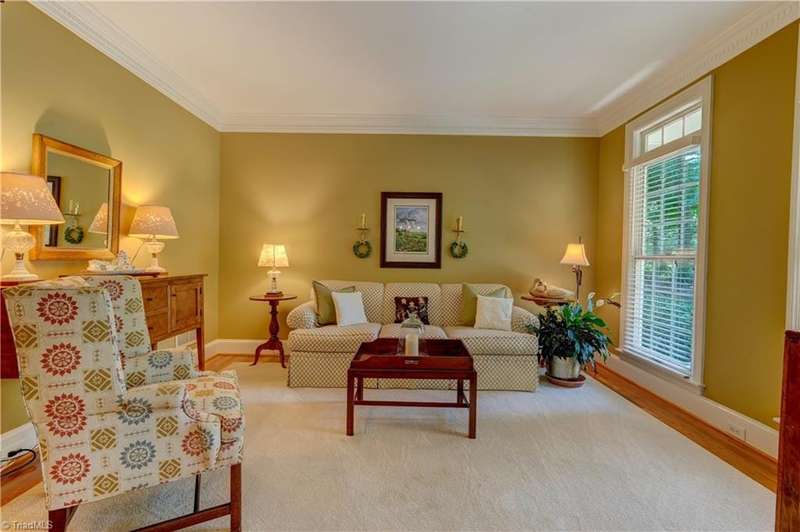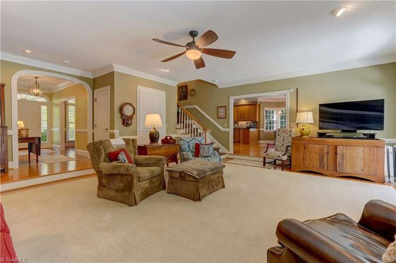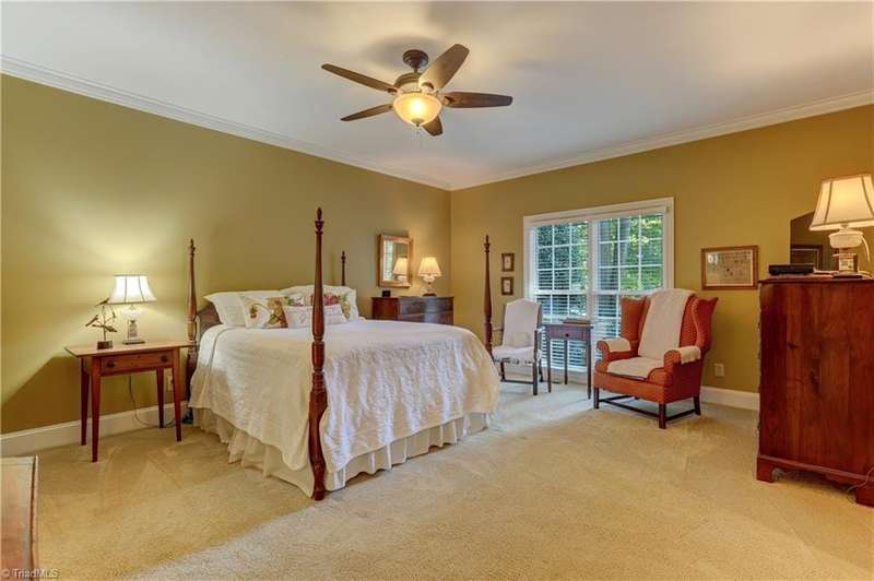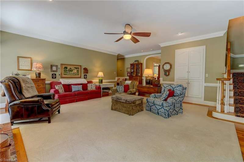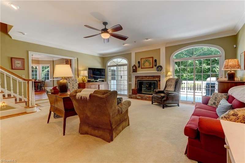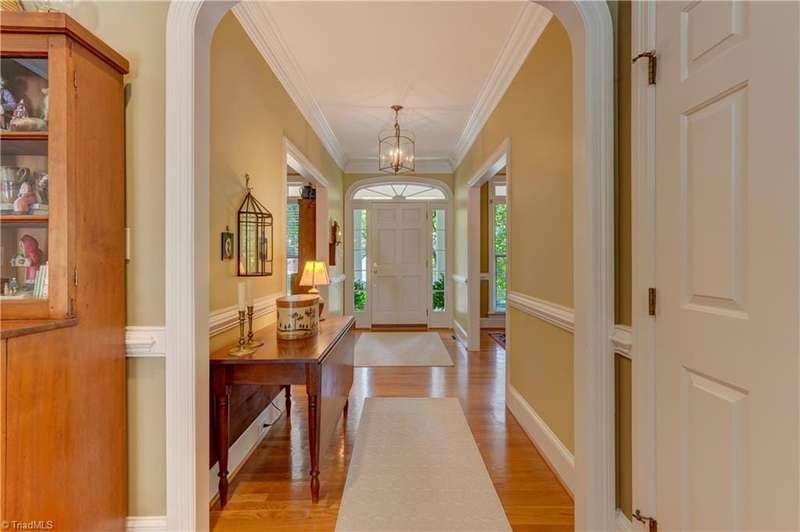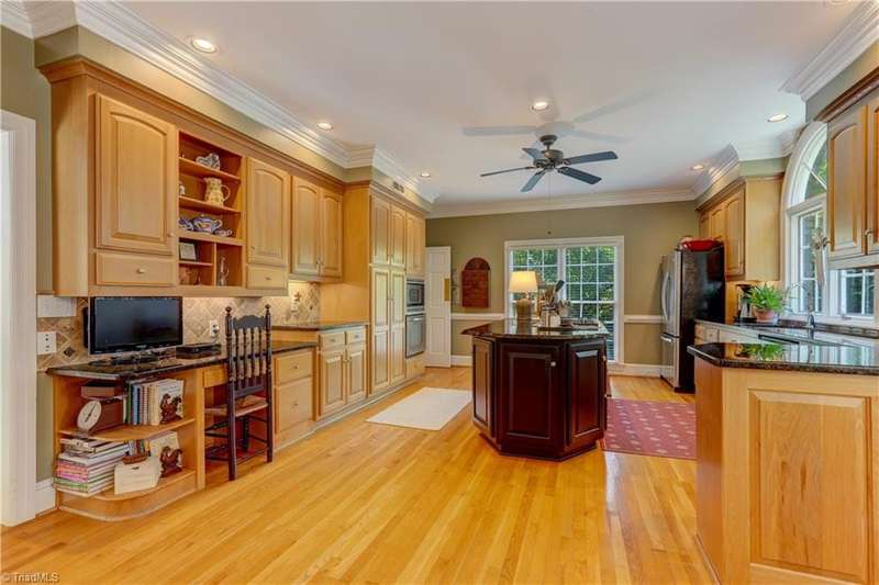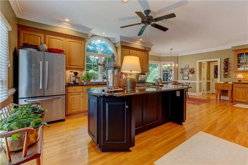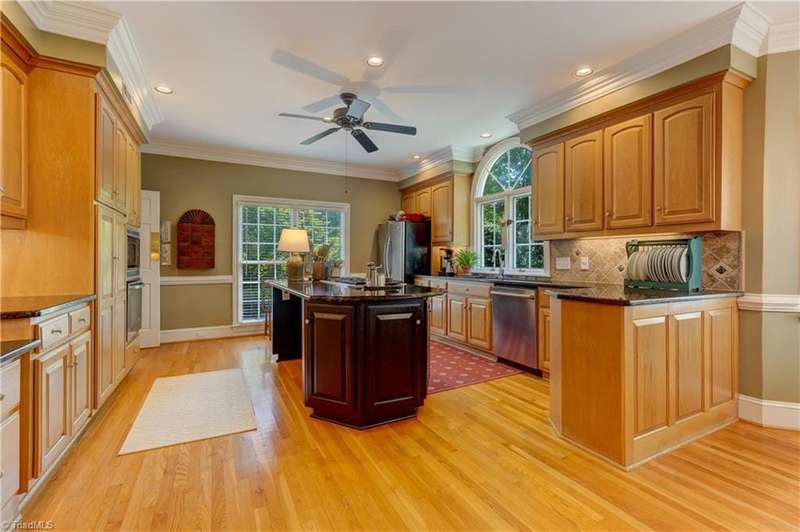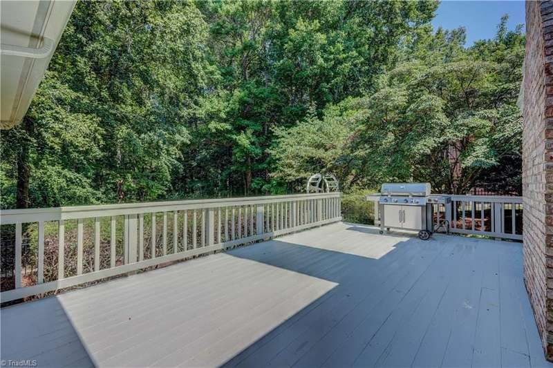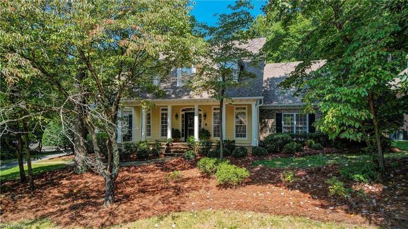 Welcome to this custom built home on over half an acre with a classic rocking chair front porch! Inside, gleaming hardwoods lead you through formal living & dining rooms into a fabulous kitchen with large island & gas cooktop, stainless appliances, wet bar & desk area. The expansive fireside den overlooks the deck with gas line for grilling made easy & the private fenced yard. Retreat to the main-level primary suite with walk-in closet, dual vanities, jetted tub & separate shower. Upstairs offers 3 bedrooms, an office, plus a bonus/exercise room & massive walk-in attic with access from bonus or permanent stairs through 3-car garage. Oversized windows flood the home with natural light while excellent storage, thoughtful flow & multiple gathering spaces create the perfect balance of comfort & elegance. Conveniently located near shopping, dining & 840, this home a must-see!