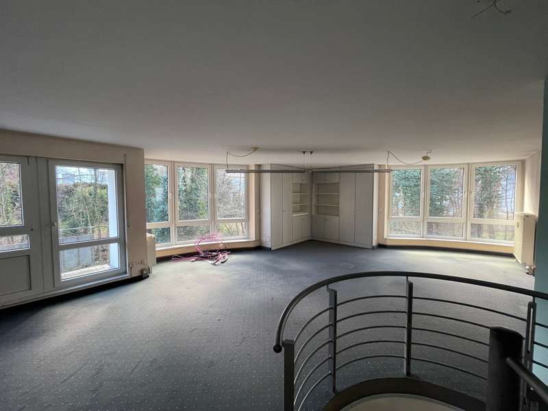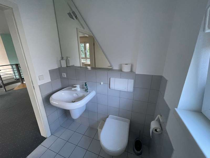 The office space offered here is located on the ground floor and garden level in a well-kept building that was completed in 1994. This property is in an excellent location on the outskirts of the city and, with its generous room layout, offers ideal conditions for various commercial uses. There are 2 further units in the building which are used for residential purposes. The total of four rooms are spread over approx. 160 sqm on two levels, which allows flexible design options for your everyday working life. On the first floor, you enter the property through an inviting entrance area, which immediately makes a professional impression. One of the two bathrooms with modern sanitary facilities and one of the two fully equipped kitchenettes, which are practically integrated into the office landscape but can be closed with a folding door, are also located on this level. A spiral staircase leads you to the garden level, which houses the remaining rooms. Here you will find the second bathroom and a separate WC, which increases convenience for employees and customers. A second kitchenette is also available on this floor, which optimizes catering for guests/customers. The room structure is ideal for setting up offices, conference rooms or work areas for different teams. Access to the terrace offers a pleasant opportunity to relax during work breaks or for informal outdoor meetings. In addition to the office space, the property offers functional basement rooms that are ideal for storage purposes. One highlight is the existing server cabinet, which meets the technical requirements of modern working and supports the secure storage of your IT infrastructure. For the mobility of your employees and customers, three car parking spaces are available on the property, ensuring convenient access. The proximity to major transport links makes the property particularly attractive for companies that value accessibility. The office space can be described as spacious, and the well-kept condition and functional furnishings are a particular feature of the property. The open-plan concept allows for an individual and flexible design of your working environment and offers sufficient space for different work areas. This office space on the outskirts of the city combines an ideal location with the necessary infrastructure and offers companies a solid basis for successful work.