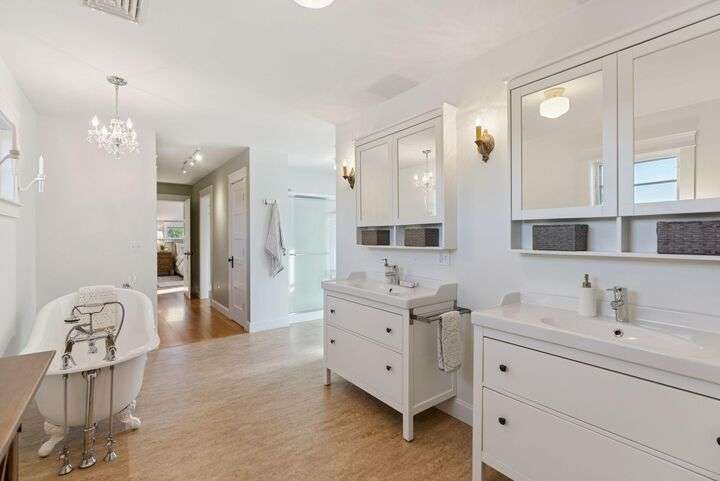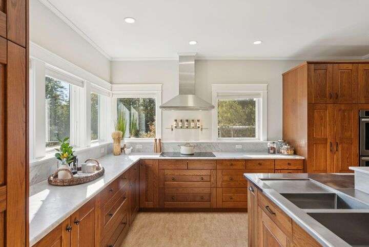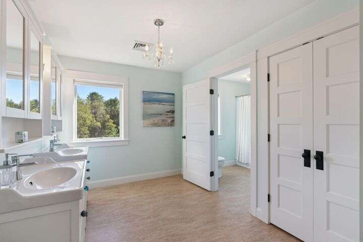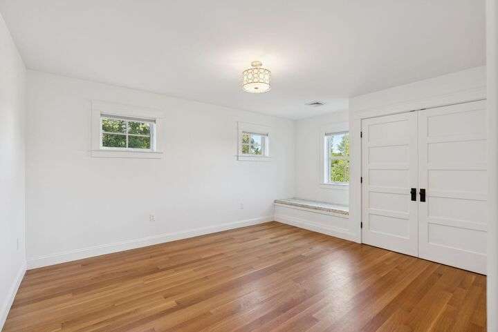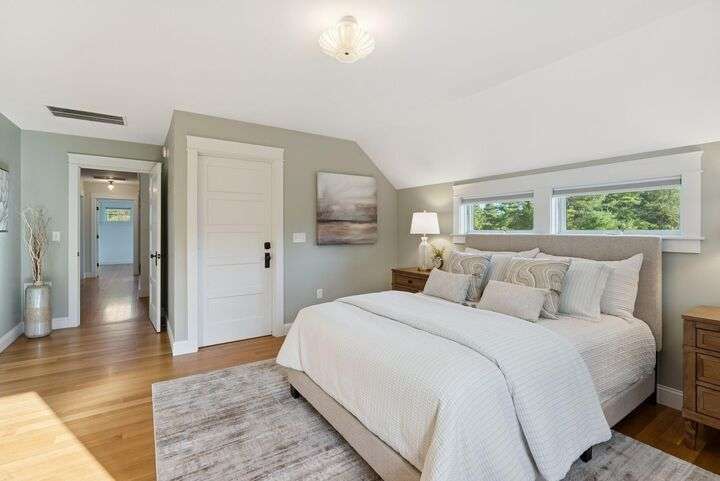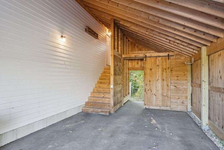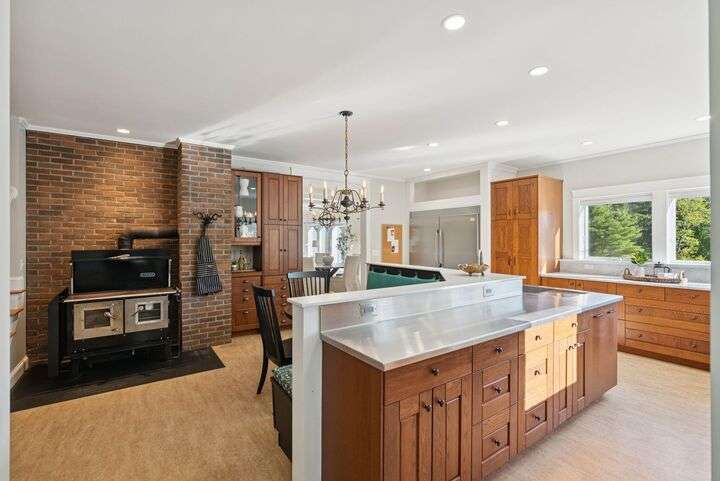 Blending timeless farmhouse character with thoughtful modern design, this stunning residence offers an extraordinary lifestyle in an estate setting. Sunlight pours through oversized triple-pane windows, capturing southern exposure and sweeping pastoral views, all framed by a private forest that connects directly to trails leading into town. Designed with sustainability in mind, the home features geothermal heating and cooling, passive solar design, and solar panels. Outdoors, the property lives like a private oasis. A heated saltwater pool with stone patio, brick fireplace, trellis, and pool house makes for an ideal gathering spot. The grounds are beautifully landscaped with fruit trees, berry bushes, native plantings. A whimsical treehouse adds to the charm.The chef's kitchen is a true centerpiece, outfitted with an induction cooktop, double ovens, a built-in oversized refrigerator and freezer, walk-in pantry, Carrera marble and stainless steel counters, a cozy built-in dining nook, and even a cooking wood-stove. The open-concept living and dining area, anchored by a fireplace, provides an inviting place to relax and entertain. Additional highlights include a custom mudroom with built-ins and a wash sink, and a spacious screened porch for three-season enjoyment.T he layout is both functional and flexible. The first floor offers a private ensuite bedroom, while upstairs you'll find three additional bedrooms, including a luxurious primary suite with abundant closet space, laundry, and a private roof deck. The finished daylight walk-out basement extends the living space previously set up with a media room, gym, home office, and storage. Completing the property is the two-car garage with garden shed and chicken coop, plus direct access to an 800-square-foot, one-bedroom Accessory Dwelling Unit. Perfectly balancing comfort, style, and sustainability, this one-of-a-kind retreat offers privacy, convenience, and a deep connection to nature, all just minutes from town.