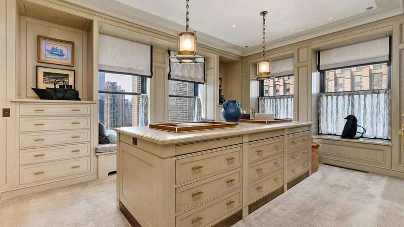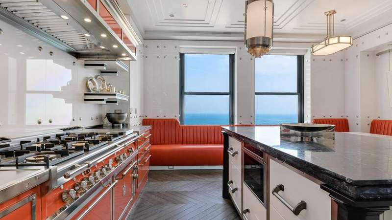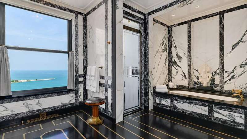 Full floor Art Deco masterpiece pays homage to the 1929 built Palmolive Building with no details overlooked. This full floor renovation by Liederbach & Graham Architects, designed by Steven Gambrel includes private elevator foyer, (3) bedrooms, sitting room plus library with adjacent office. Caretti Terrazzo floor in main foyer. French Oak-Parquet de Versailles flooring throughout main living areas. Salon features opal glass fireplace mantel. Stunning millwork including shelving and glass cabinets for artwork and books throughout. The kitchen showcases an Officine Gullo Range complimented by Sub-Zero & Miele appliances with expansive eat in dining table and bench overlooking Lake Michigan and Oak Street Beach. Primary bathroom on point with Calacatta and Belgium black marbles. Home features (3) fireplaces including one in red leather wrapped library. Primary walk-in closet featured in Architectural Digest boasts natural light via window seats, bleached walnut custom cabinetry with leather-topped, double-sided chest of drawers. Home features electronic blinds throughout. There are (4) garage spots included with (2) more available.