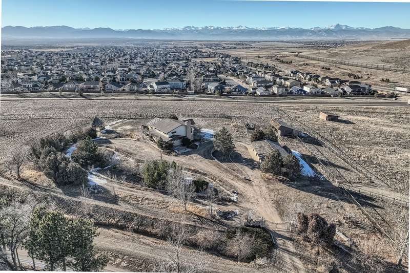 Lots of possibilities and potential! Unobstructed mountain views in unincorporated Weld County. Scrape the current home and build one or two homes on this 17+ acre property, or gut and remodel existing home. The location at the end of the road with a gated entry, allows you to enjoy the peace and quiet with no HOA Bring your horses and livestock, and take full advantage of the agricultural zoning, with a deeded right-of-way to Community irrigation ditch along eastern border. Property comes with several outbuildings, including a four car detached garage with enclosed shop, barn, storage shed, loafing shed, tractor barn and chicken coop. This has the potential to be an amazing multi-generational compound, or build your dream home and create an amazing estate, or annex to City of Erie and develop. This property is part of an estate sale, Seller has no direct knowledge of the property. The house has not been occupied for a few years now, and has had significant animal activity. The carpet has been removed and it has been swept clean. There were frozen pipes, and with animal activity, the electrical system may have issues. The kitchen and bathrooms are original finishes with damage from animals and lack of use. The siding may be salvageable in places, and we do not know the condition of the roof. Buyer to verify all information.