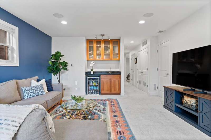 Perfectly positioned in the heart of Bucktown, directly across from Holstein Park, this stunning 4-bedroom, 3.1-bath full masonry home offers the ideal blend of elegance, comfort, and city convenience. Step inside to a sun-drenched living room highlighted by a charming picture window overlooking the park and a cozy wood-burning fireplace, seamlessly flowing into a sophisticated dining area. The chef's kitchen is designed for both everyday living and entertaining, featuring abundant cabinetry, a full pantry, expansive counter space, an eat-in breakfast bar, and a central island that opens into the spacious family room. Sliding glass doors extend the living space outdoors to a large Trex deck-ideal for grilling and al fresco dining-with stairs leading up to a beautifully appointed garage roof deck with pergola. Upstairs, discover three bright bedrooms, including a luxurious primary suite with generous closets and a spa-inspired bath boasting a soaking tub, oversized shower, dual vanities, ample storage, and natural light from a skylight. The two additional bedrooms share a thoughtfully designed bathroom with double sinks and a separate shower/toilet area. The lower level offers exceptional versatility with a sprawling recreation room, gas fireplace, built-in bar with wine fridge, storage closets galore, and space for relaxing or entertaining. A fourth bedroom with a full bath makes an ideal guest suite or home office. Additional highlights include a large laundry room, grand mud area, irrigated front lawn and a two-car garage. Enjoy the vibrant Bucktown lifestyle just outside your door, with Holstein Park's pool, playground, and green spaces serving as an extension of your backyard, plus easy access to the Blue Line for seamless commuting.