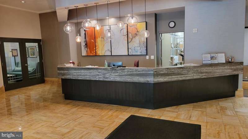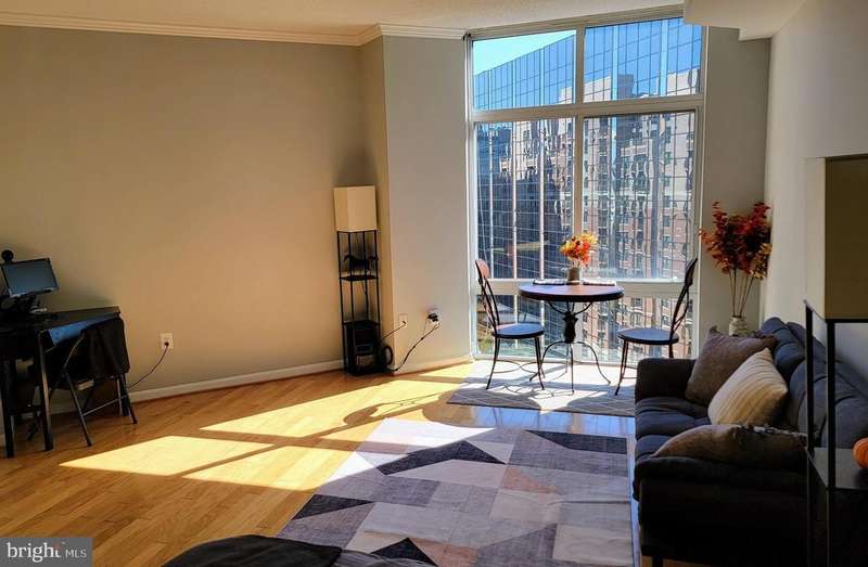 Move-in ready, spacious, bright-and quiet-studio/efficiency perched on a high floor in The Northampton Place, Alexandria condominium building. Washer and dryer in unit, with full kitchen and eat-in counter/bar, granite counter tops, brand new stainless steel refrigerator with ice maker, electric stove, dishwasher, extensive maple cabinetry and storage, and new microwave. Plenty of storage and closet space includes two spacious double, mirrored closets and front hall coat closet. One assigned underground garage parking space 242 on G2, and one assigned storage space in garage 141. Extensive onsite amenities include: business center, fitness center, sauna, fire pit, outdoor pool, lounge with a fireplace, game room, and indoor common rooms available for events and work space and with full kitchen and bar. Owner pays for condo fee which includes: concierge/24 hour front desk, onsite resident manager and semiannual HVAC servicing. Utilities are Dominion Electric and Comcast (paid by tenant). $400 non-refundable move-in fee and $250 refundable elevator use fee. Location is a 10! Down the street from the new Harris Teeter grocery store, Silver Diner, the W&OD scenic exercise trail and dog park. Minutes to Shirlington Village dining, movie theater, shopping, coffee house, fitness, juice bar, library and pubs. Metro bus to the Pentagon and DASH bus to King Street metro station. Near Amazon HQ2 (4.8 miles), Virginia Tech Innovation Campus (4.2 miles), The Pentagon (4.4 miles). Close to I-395 (1.2 miles), King Street metro (3.7 miles), Crystal City metro (4.8 miles). All distances are approximate. Minimum credit score of 720. Available November 2025.