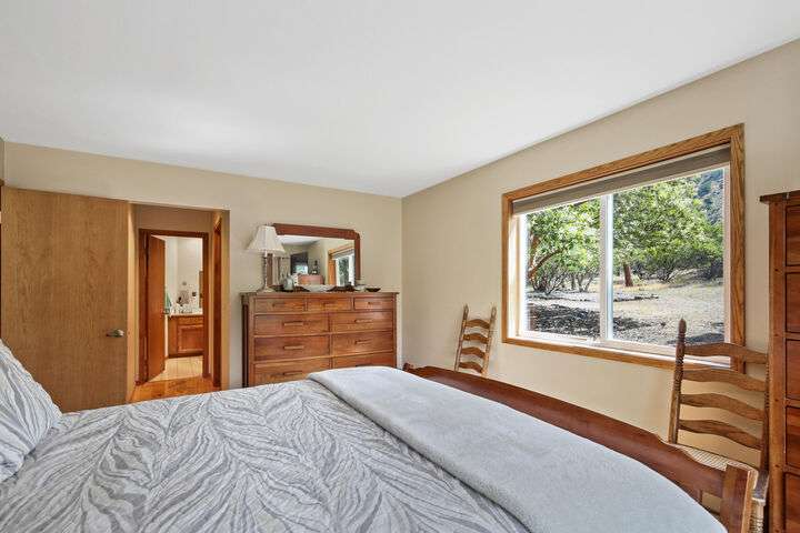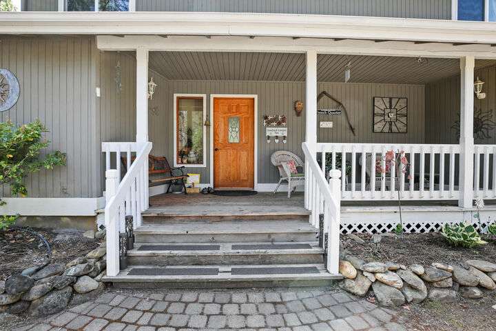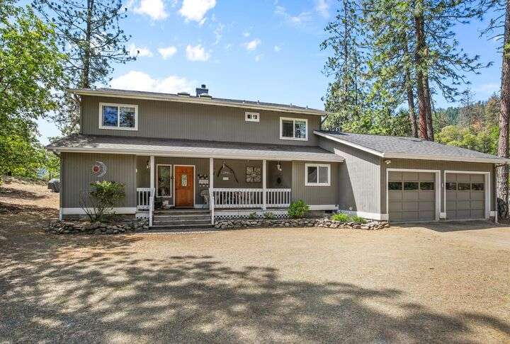 Private two story custom built home on 9.42 Acres with Applegate River frontage. 12 miles from Historic Jacksonville and 5 miles from the town of Ruch and 6 miles to Applegate Lake and Squaw Lake. The beautiful home has a barn/shop and car ports attached for all your toys. This property backs up to BLM and all the trails for great horse riding. There is an above ground pool structure that needs liner and some TLC or can be removed. The property is partially fenced but could work for some horses or other critters with additional fencing. Home is back from the River and the road so no Flood Insurance needed. EV charging station in the garage. All information is believed to be accurate but buyer to do own due diligence as to the uses and condition of the property.