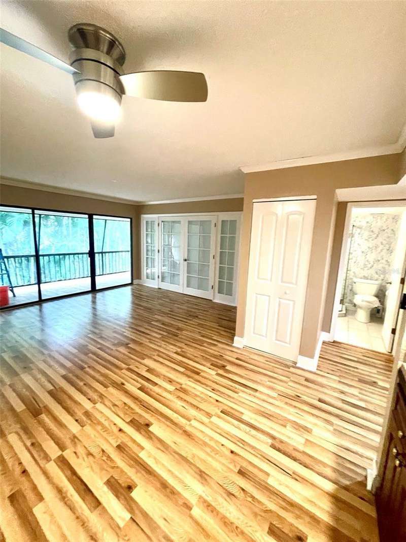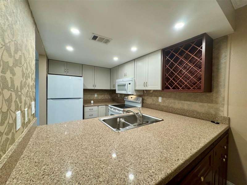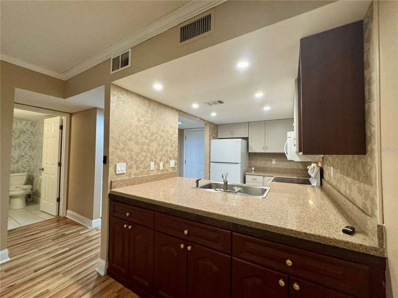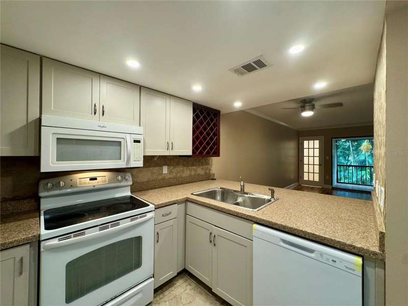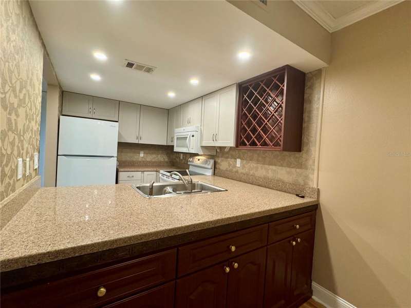 Unfurnished annual rental available in Pinebrook Hollow: a two-bedroom end unit on the second floor situated in the tranquil heart of The Meadows—an idyllic community rich in outdoor activities. Enjoy access to golf courses, 15 HAR-TRU tennis courts, 10 pickleball courts, and a fitness center. This meticulously maintained 967 SqFt residence features elegant crown molding, fresh paint throughout, and wood laminate flooring. The kitchen is pristine, equipped with granite countertops and upgraded cabinetry. You'll find two modern, renovated bathrooms and a stacked washer and dryer. Step onto your oversized screened-in lanai to relax with a peaceful view of the woods, and benefit from a private outdoor storage area, two new impact windows, and additional interior storage. Assigned parking is included, along with guest parking, a community pool, walking trails, and lush landscaping throughout this remarkable community. The Meadows offers a variety of amenities, including a fitness and wellness center, a junior Olympic-sized pool and spa, 15 HAR-TRU tennis courts, 14 miles of walking/biking trails, a dog park, gardens, ponds for fishing, a basketball court, 24-hour security, a shopping village, and a playground. Nature enthusiasts will appreciate the serene environment. Please note that certain vehicle restrictions apply as per association rules (no overnight parking for trucks or commercial vehicles). Renters insurance may be required, and tenants will be responsible for utilities. The application process involves two steps through RentSpree and the condo association application, with fees for both. Owner will consider one small pet and must be approved.