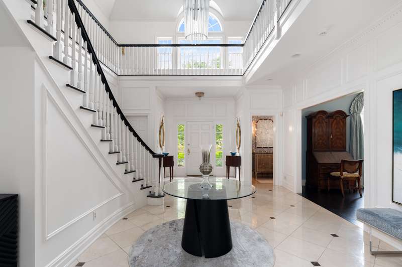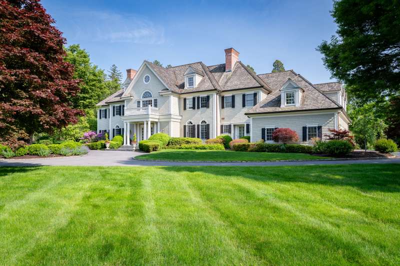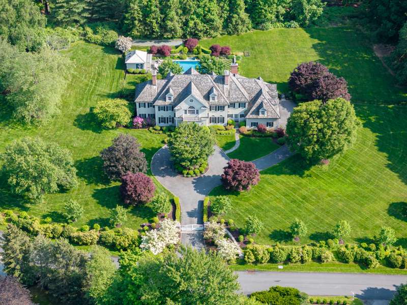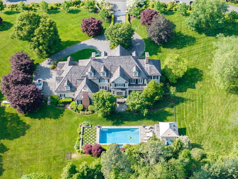 The pinnacle of Modern Colonial elegance in Pound Ridge: timeless classicism elevated to a grand scale, featuring spacious rooms, prestige amenities and luxury finishes crafted for contemporary comfort. Set on 3.7 acres on exclusive Great Hill Farms Road, its minutes from both Bedford Village and Stamford and an hour to Manhattan. Sunlight streams through the double-height entry, illuminating marble floors, custom paneling, and striking contemporary chandelier. The formal living room with wood-burning fireplace, exquisite millwork and French doors to a terrace opens to a sunroom wrapped in windows. A large dining room also offers French doors to the private patio. The chefs kitchen dazzles with dramatic lighting, custom banquette and top-tier Wolf range and Thermador refrigerator which is open to the family room with a beautiful stone fireplace. Upstairs, the luxurious primary suiteboasts twin sets of French doors leading to a balcony, two spa-quality baths, and dual custom dressing rooms. Two additional ensuite bedrooms and two other bedrooms that share a bath complete the upper level The lower level offers everything for full-on recreation: a glass-enclosed gym, cinema room, family room, guest suite, wine cellar and full bar. Outside is a resort style escape offering spectacular landscaping, inviting pool and charming pool house and bocce court offering relaxation and recreation. This Pound Ridge paradise, with easy access to the Merritt and 684, is a rare fusion of heritage home and private luxury resort.