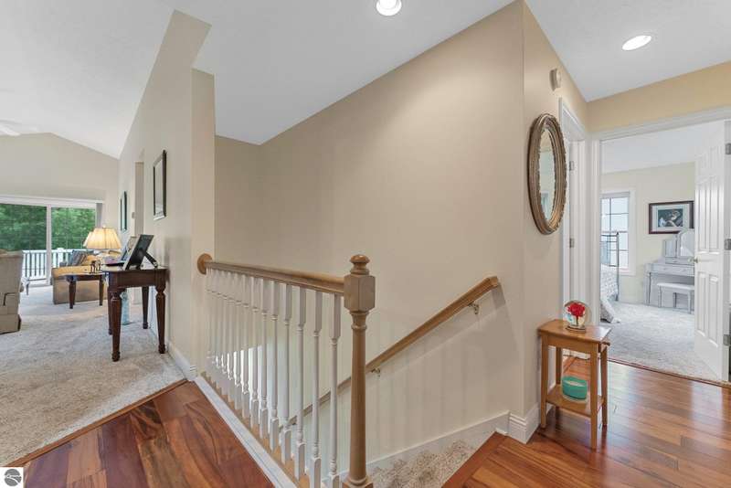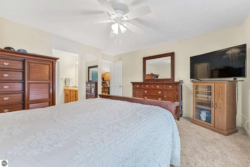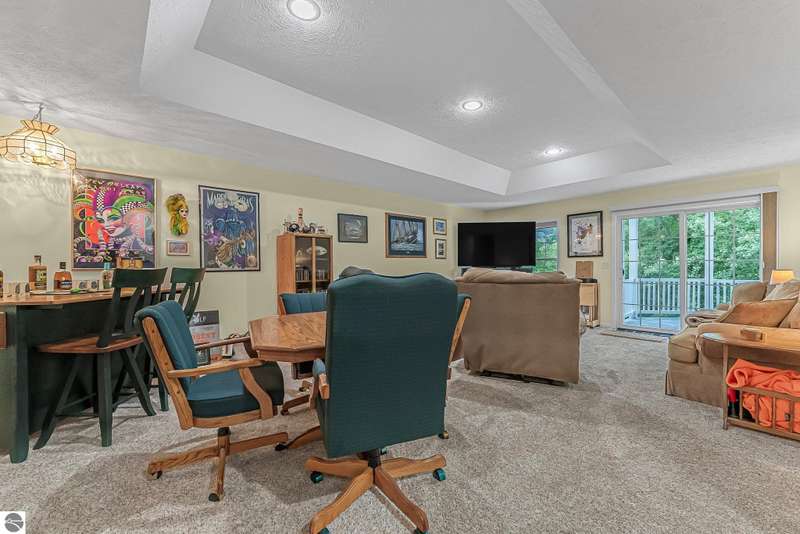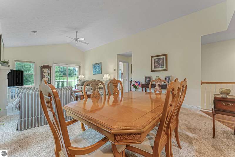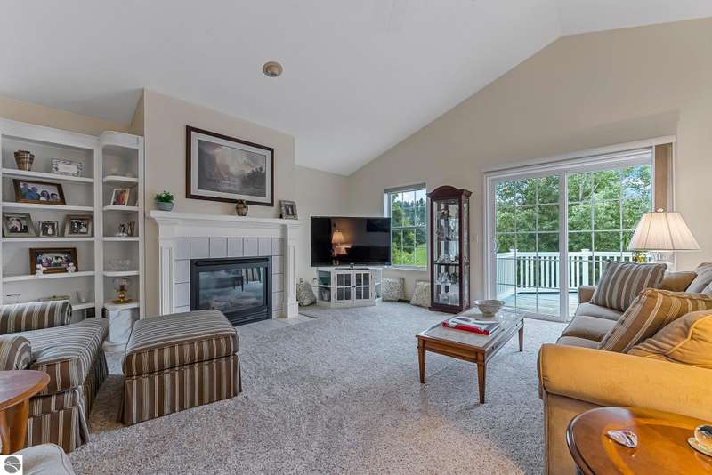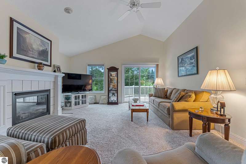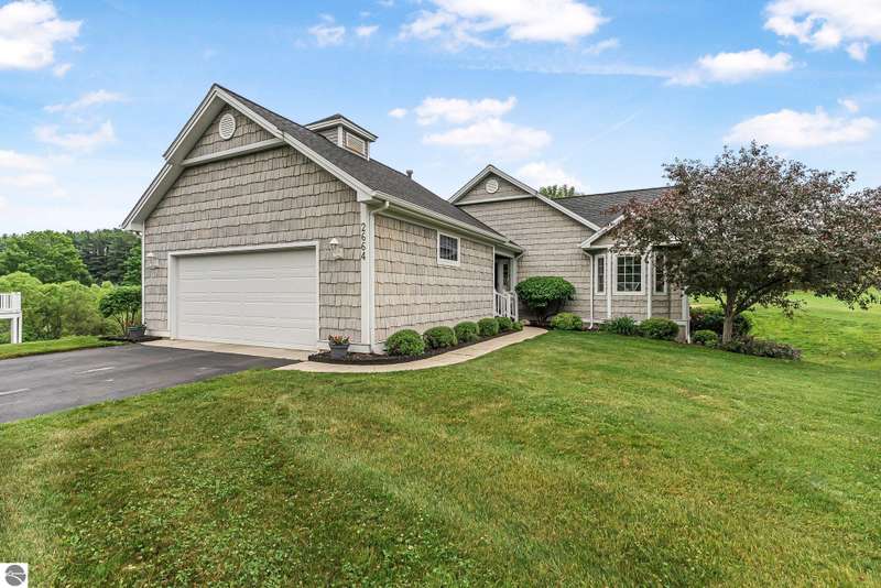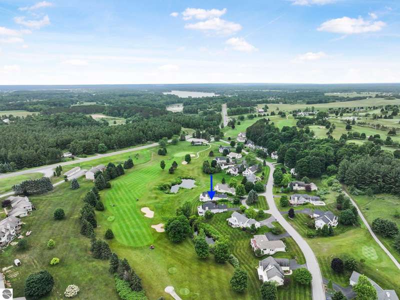 Play 18 at The Crown, then cruise home in your golf cart to this meticulously maintained 3-bed, 3-bath retreat on the 6th hole. Enjoy main-floor living with a private primary and en suite, a spacious deck perfect for sunset dinners, and a cozy den for movie nights. The lower level offers a walkout access deck with hot tub and plenty of unfinished space for storage. Just minutes from downtown Traverse City, this home blends convenience, comfort, and charm.