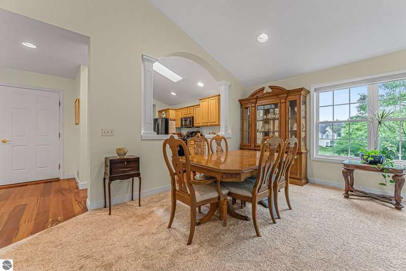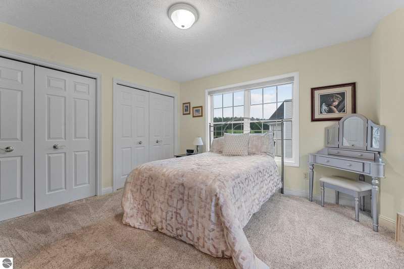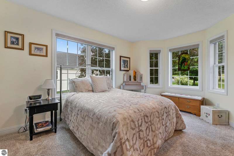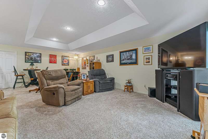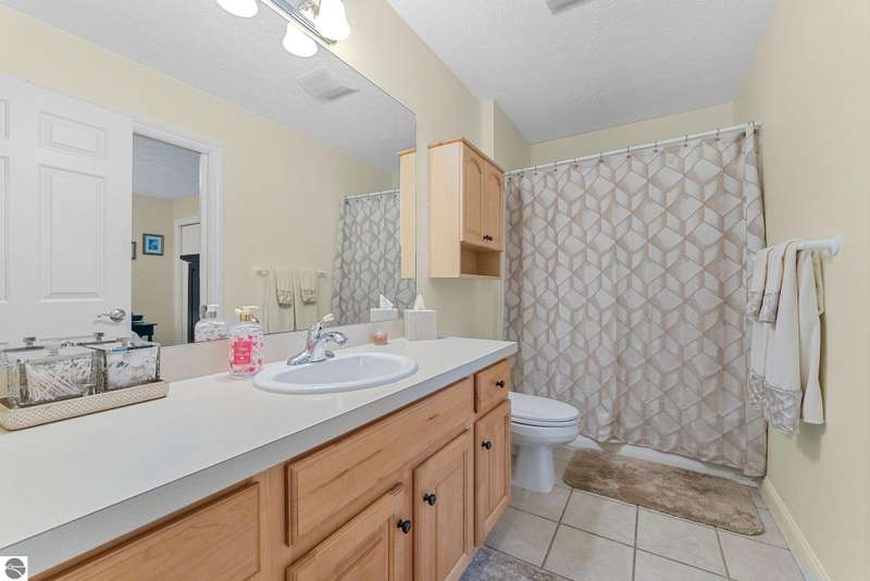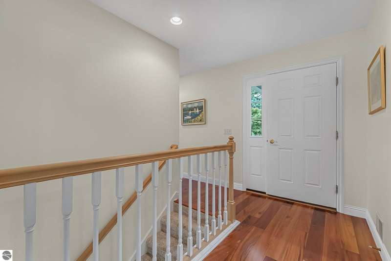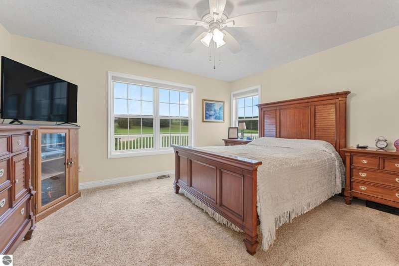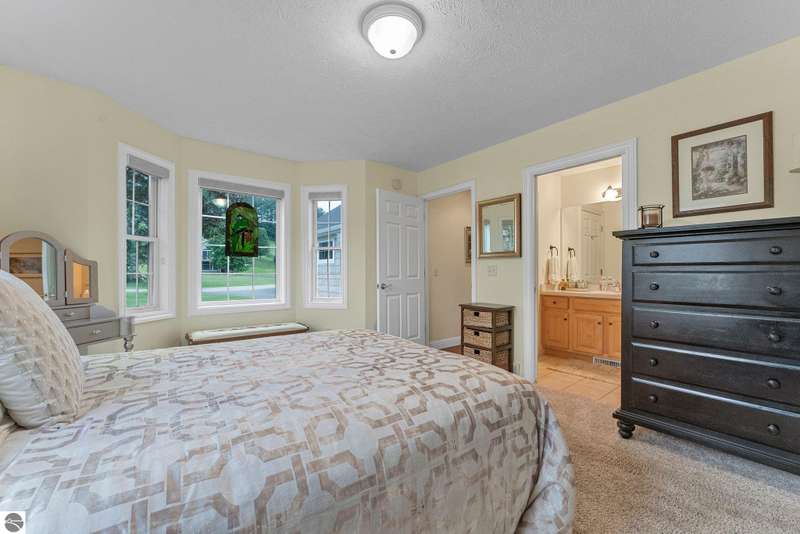 Play 18 at The Crown, then cruise home in your golf cart to this meticulously maintained 3-bed, 3-bath retreat on the 6th hole. Enjoy main-floor living with a private primary and en suite, a spacious deck perfect for sunset dinners, and a cozy den for movie nights. The lower level offers a walkout access deck with hot tub and plenty of unfinished space for storage. Just minutes from downtown Traverse City, this home blends convenience, comfort, and charm.