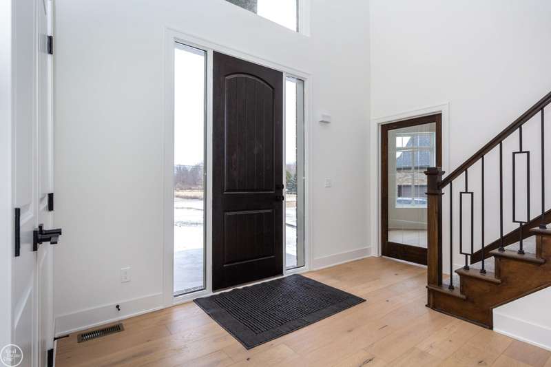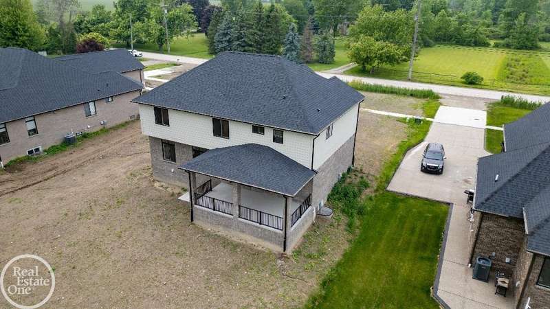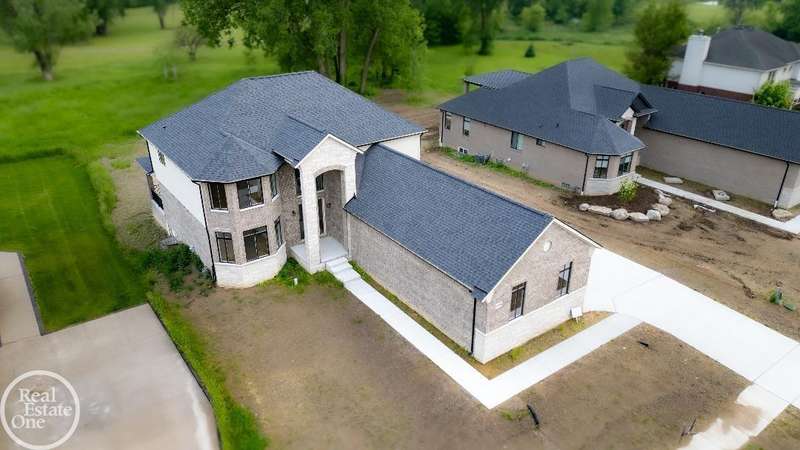 Ask about the Builders interest rate Buy Down. This luxury colonial built by Bridgeview Homes is completed and ready to be enjoyed. Built on a half-acre lot, it features a modern, stylish design with a bonus 4 car garage. Prepare tasty meals and entertain in your spacious gourmet kitchen w/Lafata soft close cabinets (roll-out bottom drawers), area for double oven/convection oven/microwave, island counter w/space for wine cooler, quartz countertops and step-in pantry. Engineered hard wood flooring throughout the main/upper level. Spacious laundry w/storage cabinets, laundry tub, bench with storage and large closet. Each large bedroom features hard wood flooring and it's own walk-in-closet. Main suite features a vaulted ceiling, hard wood flooring, cavernous walk-in closet with window, private bath w/double sink, framed mirrors, huge walk-in shower w/Euro Enclosure. Premium brick & stone elevation with a 24 x 12 covered veranda. Extra deep basement is insulated & completely drywalled w/egress window. 90+ furnace & hot water tank (50 gal). THE 4 CAR SIDE ENTRY GARAGE is finished, drywalled & painted. Home is completed and awesome!! Located in award winning Anchor Bay School District. OVER HALF ACRE LOT. AI grass.