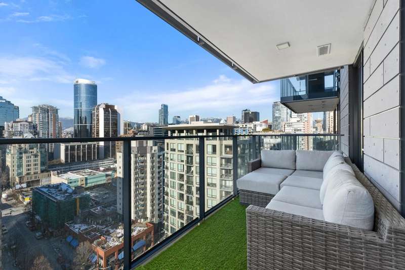 SPECTACULAR VANCOUVER SKYLINE VIEW IN THE HEART OF YALETOWN! Perched above Emery Barnes Park, 8X ON THE PARK is a symbol of Vancouver's modern luxury. This meticulously designed home offers open layout w/ no wasted space, floor-to-ceiling windows flooding the home w/ natural light. Luxurious interior includes A/C ensuring year-round comfort & HW flooring throughout. Gourmet kitchen boasts Italian cabinetry, marble stone backsplash & integrated Miele appliances. Step onto your spacious balcony and take in the breathtaking Vancouver Skyline Views. Explore the Sky Lounge which features an elegant social space & full-size gym complete with a yoga studio. 24/7 Concierge. Unbeatable convenience w/ boutique shopping, groceries all at your doorstep!
