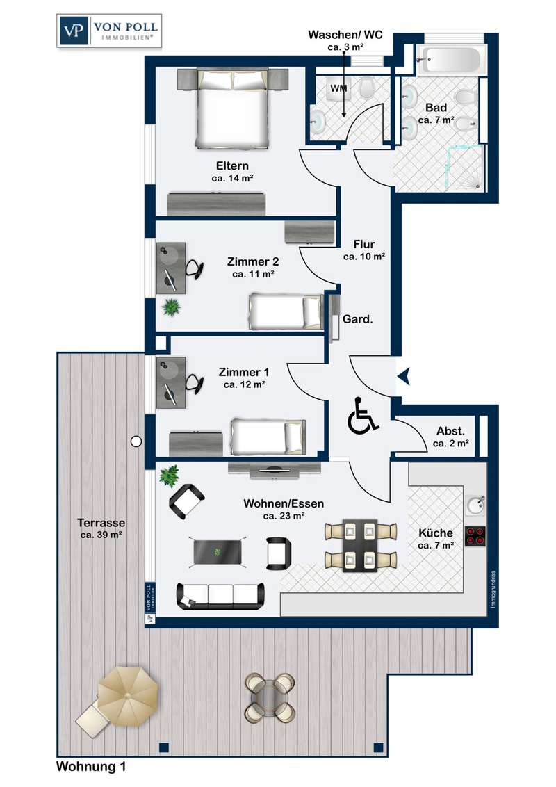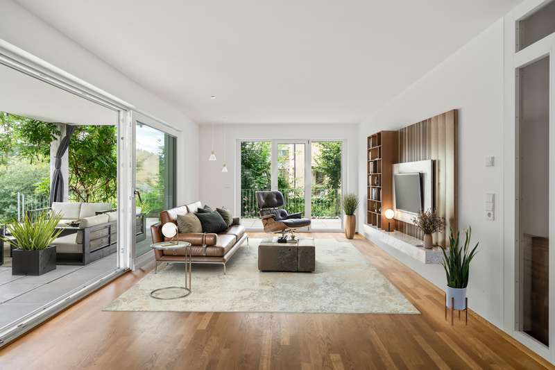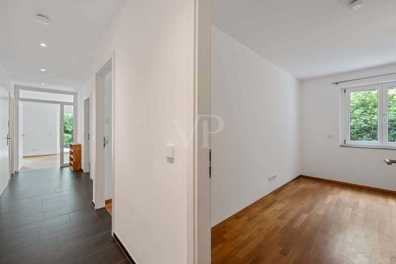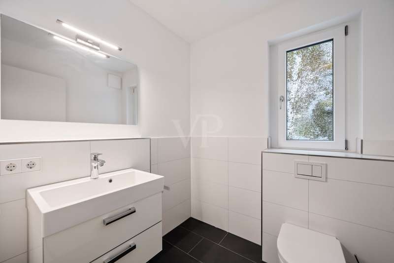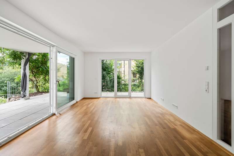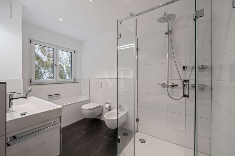 This attractive first floor apartment, built in 2016, is located in a well-kept apartment building with a total of five residential units. The property is characterized by an upscale quality of furnishings and combines modern living comfort with a well thought-out room layout. With a total of four rooms, the apartment offers space for a family as well as for couples who value spacious living. The heart of the apartment is the inviting living and dining area, which receives plenty of natural light through large window fronts and offers an appealing view of the garden. Adjacent to the open-plan living area is the open-plan kitchen, which is equipped with modern built-in appliances and offers plenty of storage space. A high-quality granite worktop rounds off the contemporary kitchen design. The property has two spacious bedrooms, which can be used in a variety of ways thanks to their optimal layout. There is also a further room that is ideal as a study or guest room. The modern bathroom is equipped with a floor-level shower, a bathtub and elegant fittings. A separate guest WC with shower and natural light increases comfort for visitors and residents alike. The apartment also impresses with its well-kept furnishings and the use of high-quality materials such as parquet flooring in the living rooms, while the kitchen and bathroom feature stylish tiles. Heating (underfloor heating) is provided by an efficient central heating system, which ensures a pleasant indoor climate. A particular highlight of this apartment is the large terrace, which has direct access to the garden area. This area invites you to spend relaxing hours outdoors and offers enough space to be individually designed. Due to its location on the first floor, the apartment provides convenient access and barrier-free living. Due to the hillside location, the apartment is on an elevated level and offers a great view. The location of the property impresses with its excellent infrastructure. Shopping facilities, schools and public transport are in the immediate vicinity and can be easily reached on foot. The connection to the local transport network also ensures that the surrounding towns and the city center can be reached quickly. A separate cellar room is also part of the apartment and offers additional storage space. There is a parking space for your vehicle right next to the building. This well-kept ground-floor apartment combines modern living with an excellently thought-out floor plan and high-quality fixtures and fittings. It is therefore ideal for prospective buyers who demand quality and comfort from their future home. Please contact us for further information or to arrange a viewing. We look forward to presenting this attractive property to you in person.