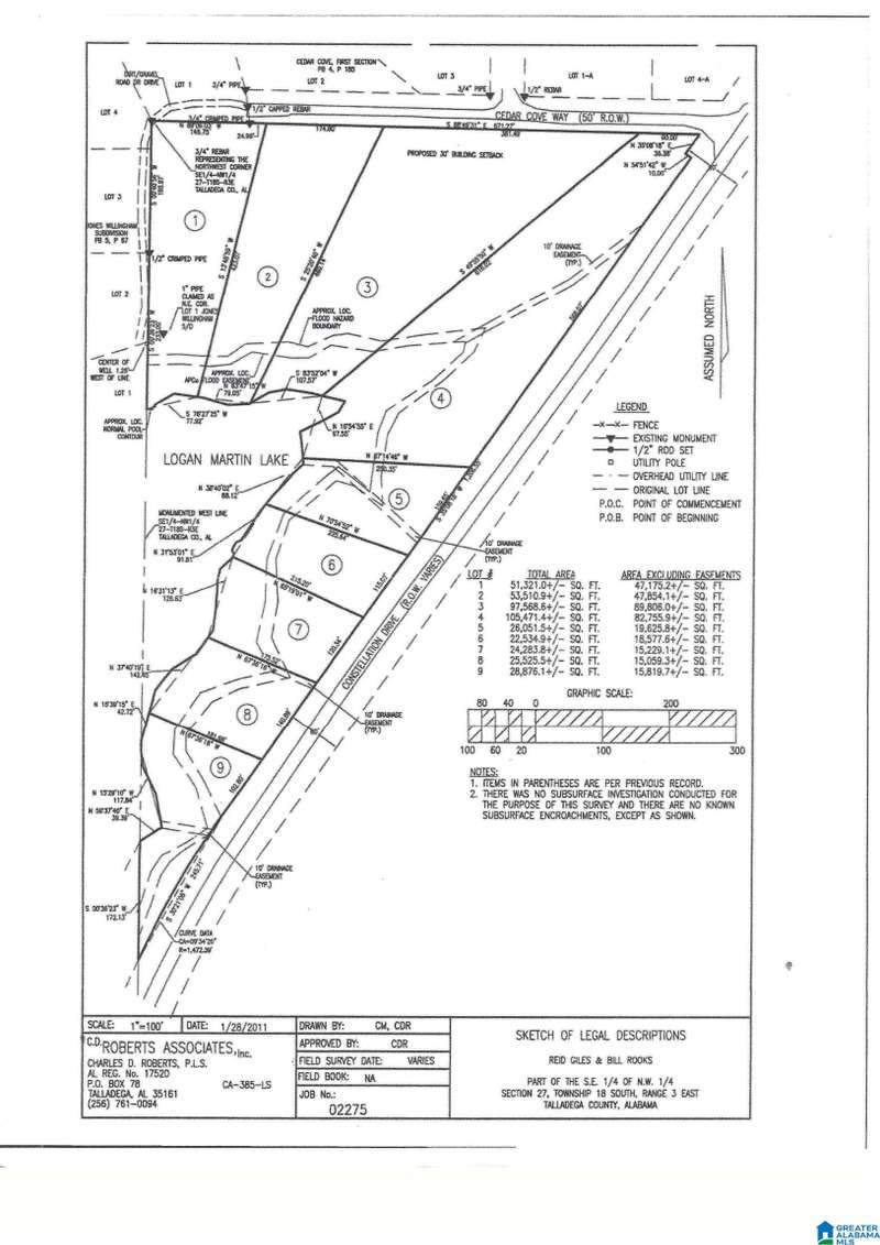 Prime Waterfront Paradise on Cedar Cove! This stunning 2+ acre corner lot offers breathtaking lake views with gentle slopes perfect for building your dream home. Located on Logan Martin Lake's coveted southern tip near the Dam, enjoy world-class fishing and year-round recreation. The desirable Cedar Cove community provides the ultimate lakefront lifestyle with convenient waterfront access. Seller designates Lot 4 for single-family residence. Close to Logan Martin Lake Park for additional outdoor adventures. Public water available through Talladega Water. Bonus opportunity: Seller also selling 34+ acres across the street - perfect for expanded privacy or investment potential with subdivision possibilities for qualified buyers. Winter water levels shown in photos. Boundary markers indicate exact property lines. Don't miss this rare chance to own premium lakefront real estate in one of the area's most sought-after locations!