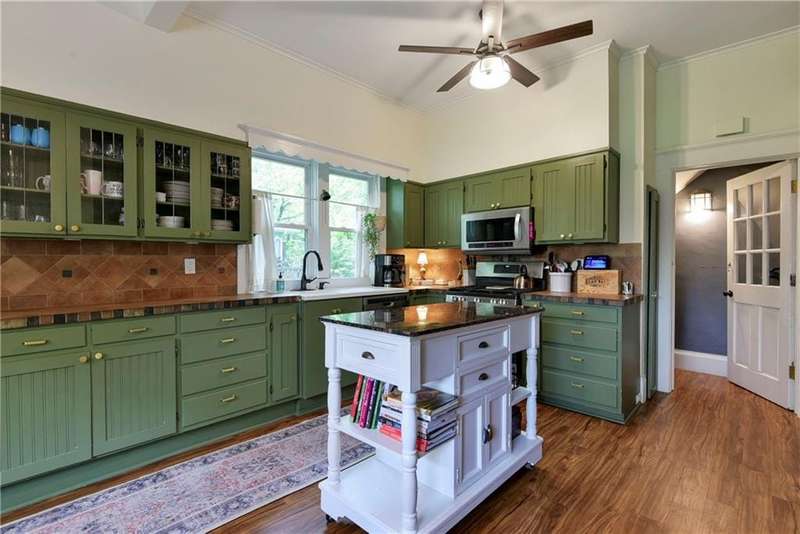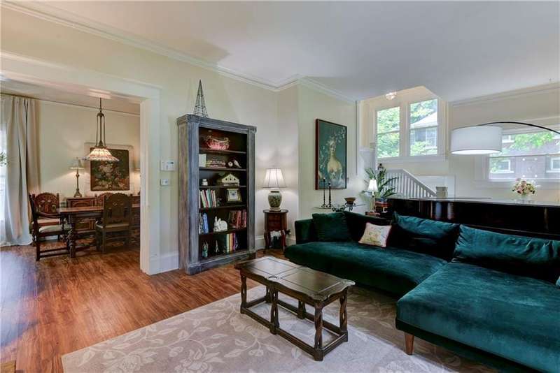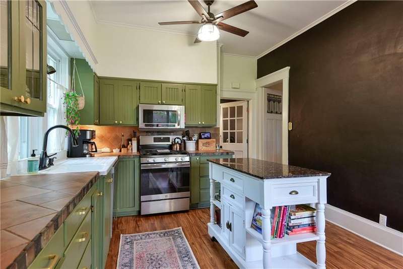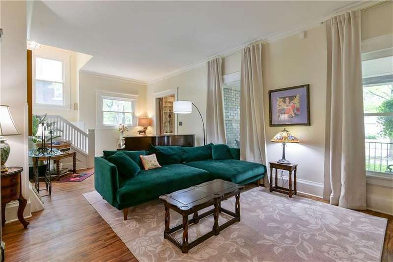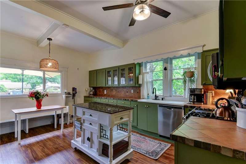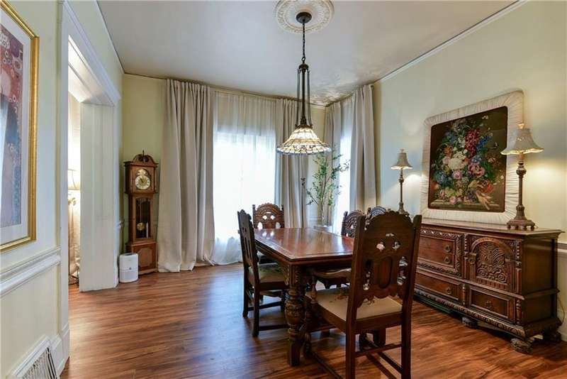 Wonderful Arts and Crafts Style 2 story home in Pittsburg, KS. Huge rooms with tall ceilings. Great front porch, perfect for decorating. Leaded and beveled glass doors and windows. Huge living room features a gas log fireplace and opens to huge dining room with leaded stain glass fixture and matching stain glass inset in double hung door to kitchen. Large eat in Kitchen with plenty of cabinet space and eat-in area looks out on picturesque fenced back yard. 4 large bedrooms and sunroom upstairs. Super neat corner window seats in 2 bedrooms. Updated hall bath and primary bedroom bath. Attic has some floored storage. Basement is unfinished and owners have installed a dry basement drainage system! Privacy Fenced Back yard is a dream with long lasting composite decking and metal railings, and separate covered flagstone patio. Perfect for out door entertaining and possible future pool. Selling in AS IS Condition.