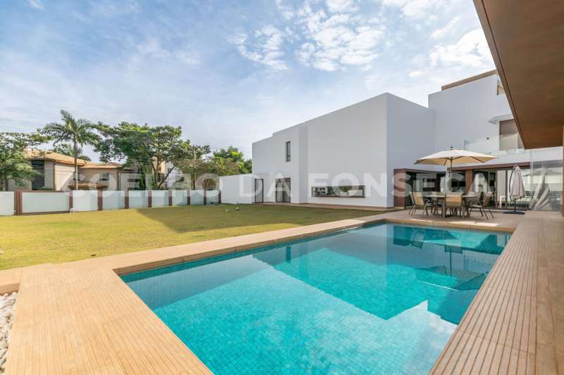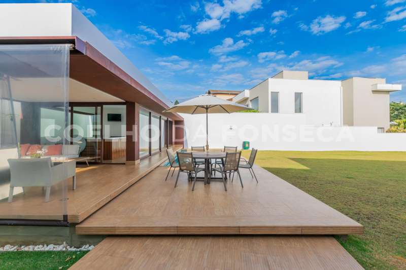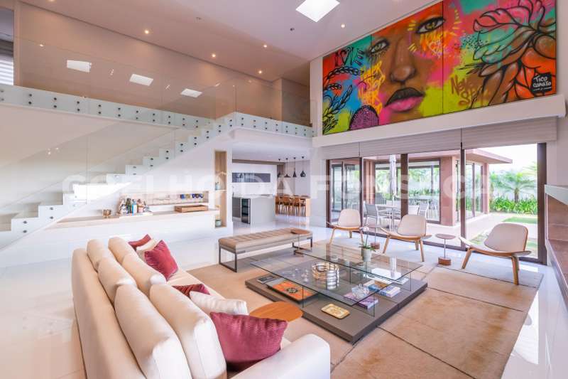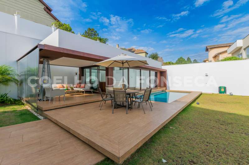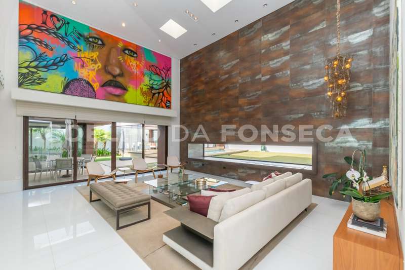 Imóvel de alto padrão no Residencial Morada dos Lagos, em Aldeia da Serra! Esta casa se destaca pela luminosidade natural que invade os ambientes totalmente integrados , amplos espaços, conforto e decoração minimalista. Em torno de 900 m² de construção distribuidos em mais de 1000 m² de terreno. 4 suítes, sendo uma no térreo. Escritório . Espaço Gourmet . Piscina, sauna e spa cercado por um amplo gramado . Oferece a você a liberdade de criar o seu próprio refúgio particular, para relaxar, brincar com as crianças ou receber amigos para um churrasco. Ter espaço para animais de estimação correrem e brincarem livremente, além de poder realizar eventos ao ar livre com total privacidade.