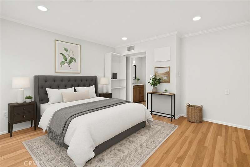 Pictures coming 8/20 Encino Spa East — Known originally as the "Rolls Royce of Townhomes" when first built in 1974, welcome to this rare Gem in One of Encino’s Most Coveted Communities. Step into luxury, comfort, and convenience with this rare two-level end-unit townhouse—boasting 3 bedrooms, 2.5 bathrooms, and 2,075 sq ft of beautifully designed living space. This residence feels like a private home, with exclusive street access and direct entry from your own 2-car garage. Just minutes from Ventura Boulevard’s dining and shopping scene and walking distance to Trader Joe’s, this prime location also offers seamless access to the 101 and 405 freeways—making commutes and weekend getaways a breeze. Enter through stately double doors with original vintage hardware to soaring ceilings and a light-filled living room that opens to a charming outdoor patio—perfect for coffee or evening cocktails. A few steps up reveal a formal dining room with built-in cabinetry, a chic guest powder room, and an updated kitchen featuring brand-new stainless steel appliances, quartz countertops, new backsplash, and a cozy breakfast nook—ideal for casual meals or entertaining. Upstairs, the elegant mid-century modern floating staircase leads to three spacious bedrooms. The primary suite is a retreat with a spa-inspired bath, soaking tub, dual vanities, makeup/dressing area, and exceptional closet space. Enjoy in-unit laundry, direct garage access, and the privacy of a unit facing White Oak Avenue—a rare perk allowing for convenient guest parking, easy deliveries, and enhanced peace. Encino Spa East offers resort-style amenities: sparkling pool, multiple spas, sauna, fitness center, clubhouse, and landscaped grounds. HOA dues include cable TV, high-speed internet, water, earthquake insurance, and security-controlled access. Upgrades: Brand-new LVP floors, updated kitchen/baths, $3K marble mosaic tile, new plantation blinds, new carpet on stairs, smart home controls. Features: Earthquake retrofit paid ($10K), one shared wall, private entrance, pool table, split AC units (2024), stainless appliances (2 yrs old), three crystal chandeliers, and a secret door to the 3rd bedroom. Client will consider buy down or closing costs