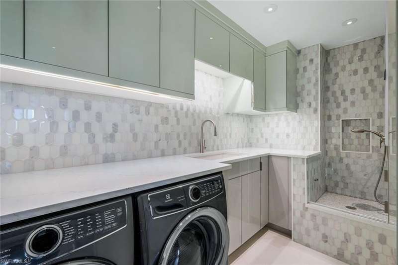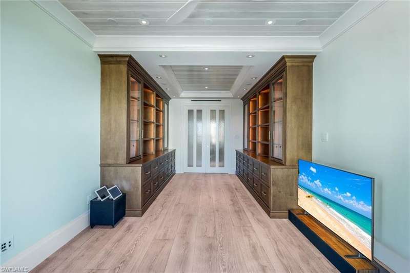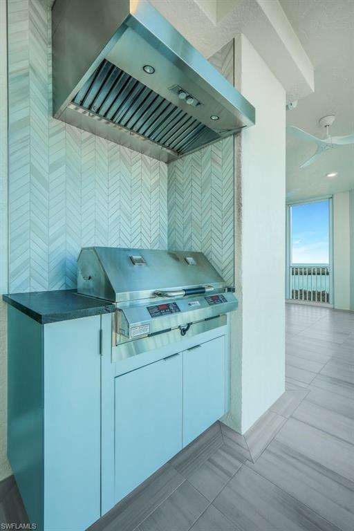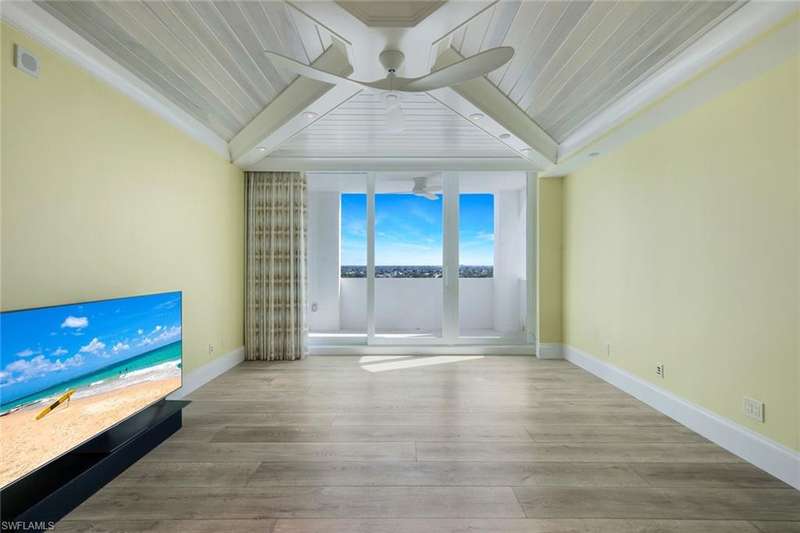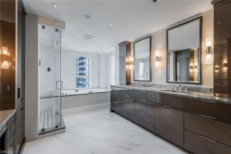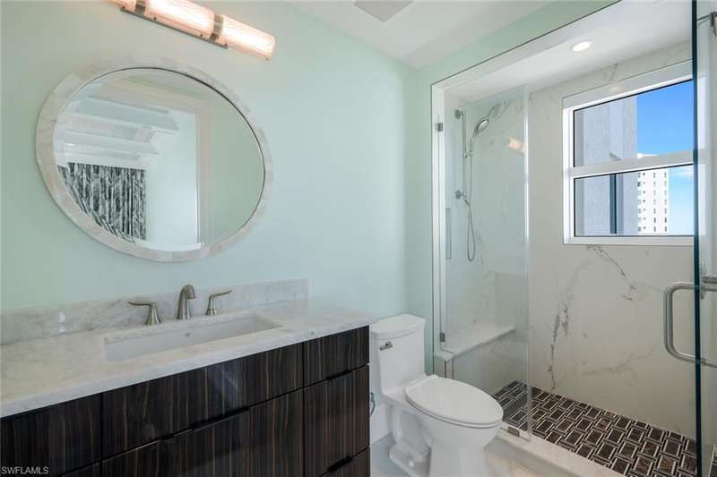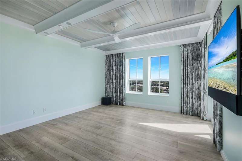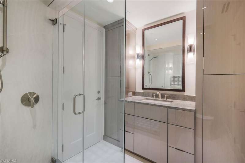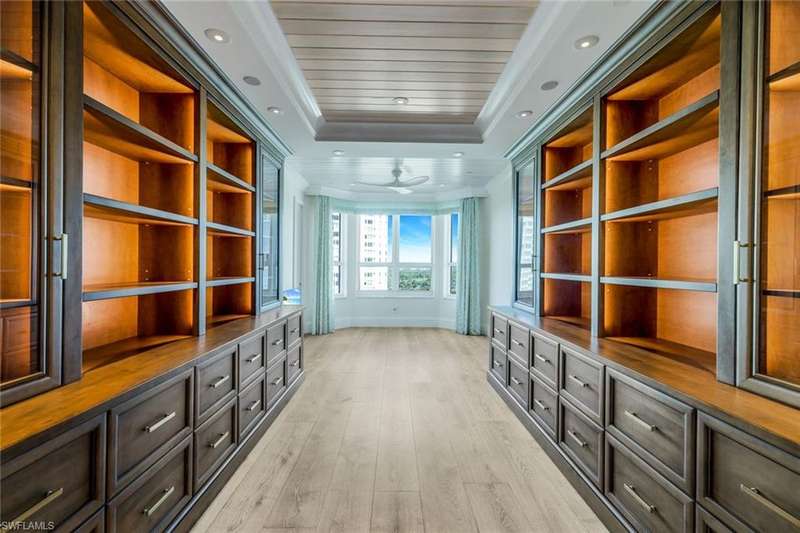 Experience the epitome of luxury living in this totally reimagined, one of a kind, 3 bedroom + den residence. With incredible water views. This Grande Preserve residence features Legno Bastone flooring and extensive coffered ceilings throughout. The chef s dream kitchen boasts a separate full-size freezer and refrigerator, wine cooler, induction cooktop, and an under-lit Antolini Blue Agate island countertop that serves as a striking centerpiece. The spa-like primary bathroom offers ultimate relaxation with a jetted tub and steam shower, while all en-suite bathrooms have been fully remodeled with new cabinets, sleek showers, and under-lit vanities, showcasing impeccable attention to detail. A large wrap-around lanai with sliding glass doors offers an incredible entertainment space featuring an electric grill, perfect for hosting friends or enjoying a quiet retreat. This serene outdoor area provides breathtaking views of Turkey Bay & the Gulf of Mexico, making it an ideal spot to rela