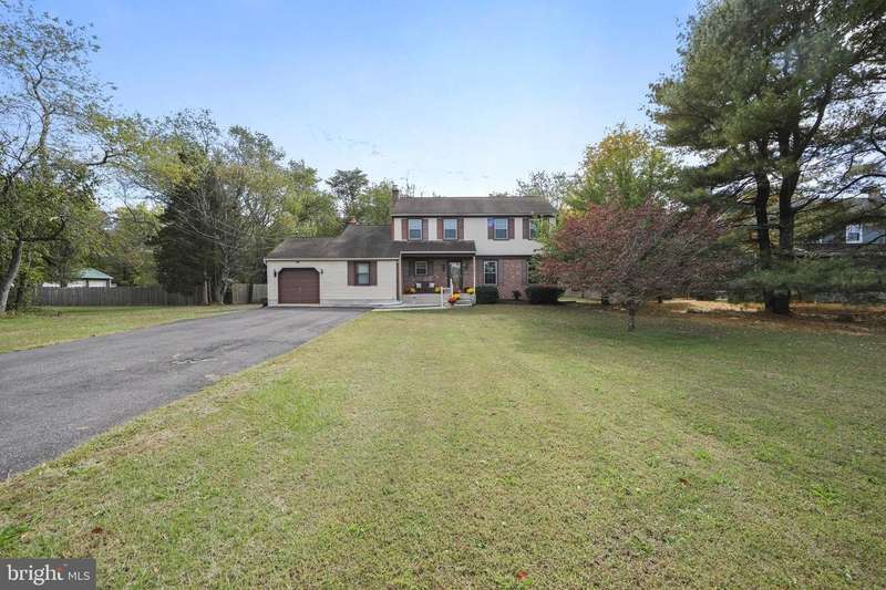 Open house Sunday, Nov. 9th, cancelled. Offer accepted. Lovely, appointed Colonial-style brick residence that boasts four spacious bedrooms and three and a half well-designed bathrooms is new to the market. The property is nestled on an expansive 1.7-acre parcel along a serene rural street. This property offers a remarkable blend of peace and privacy, complemented by protected green space across the way. Upon entering this charming home, one is immediately enveloped by the warm and inviting atmosphere of the expansive living room, adorned with rich hardwood flooring that catches the light beautifully. The neutral tones of the freshly painted walls create a versatile canvas, inviting you to infuse your personal style throughout. The dining room, enhanced by a striking modern chandelier, beckons families and friends to gather for joyful meals and celebrations. Transitioning seamlessly into the generous family room, one finds a cozy brick fireplace (with wood stove insert) that heats the interior and serves as a focal point. Sliding glass doors from the family room provide easy access to a delightful wood deck-an ideal setting for outdoor entertaining and alfresco dining. The kitchen features white cabinetry that beautifully contrasts with the sleek stainless-steel appliances. The gas stove promises efficiency and precision for your cooking endeavors, and the granite countertops provide both functionality and visual appeal. A pantry offers ample storage for ingredients and essentials, and decorative lighting adds an elegant touch to this inviting space. The first-floor bedroom is thoughtfully appointed, complete with a new private bathroom featuring a luxurious walk-in shower, highlighted by tasteful tile work, a stylish glass door, a chic vanity, new lighting, and elegant flooring-perfect for an in-law suite or accommodating guests or family members who appreciate convenience. The main level also incorporates a spacious laundry and utility room, along with a conveniently located powder room for guests. New carpeting ushers you upstairs, where a sense of coziness permeates the upper level. New carpeting can also be found throughout the second level. The primary suite features a generous walk-in closet and a tranquil sitting area, which is perfect for relaxation. The en-suite bathroom reveals a newer walk-in shower adorned with beautiful tile. Two additional spacious bedrooms offer ample closet space and are complemented by a full bathroom featuring new fixtures, stylish flooring, and an elegant vanity. With a brand-new HVAC system and water heater, this home ensures comfort and efficiency in every season. Located just minutes from vibrant shopping centers and with convenient access to Route 73, this delightful home lies within the highly regarded Marlton school district. This splendid opportunity to own a remarkable sprawling property should not be overlooked. There is still time to be in for the holidays!