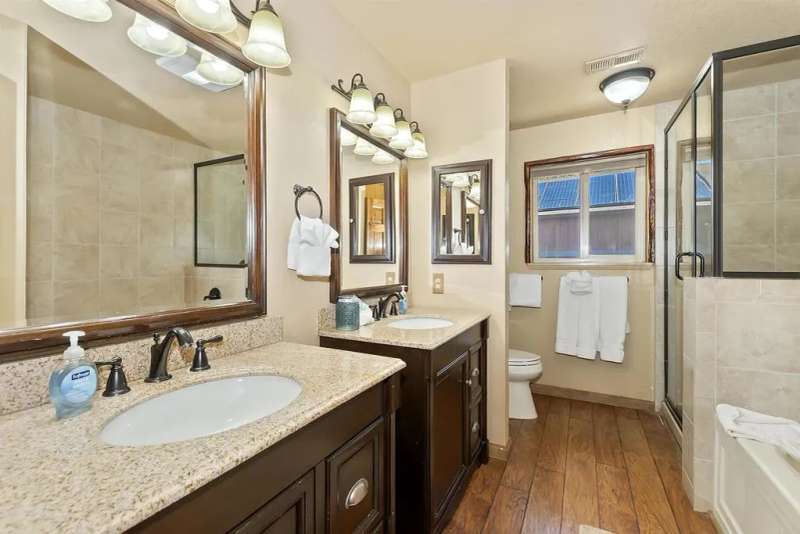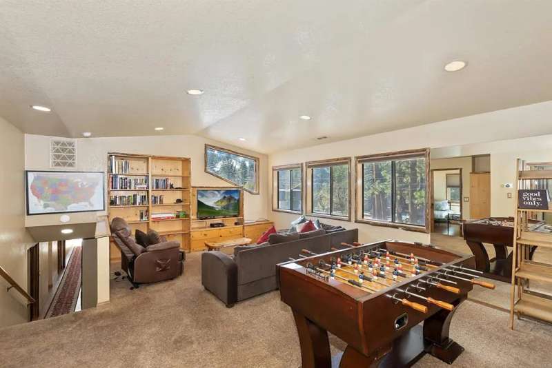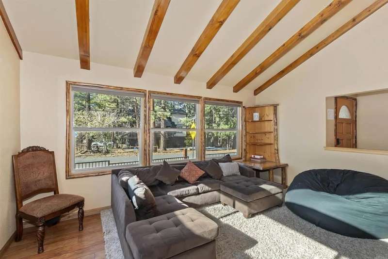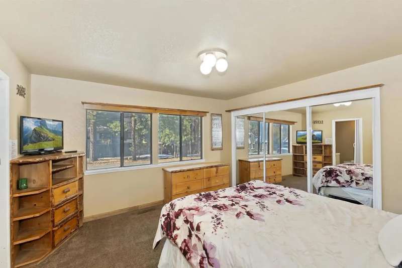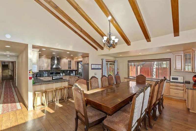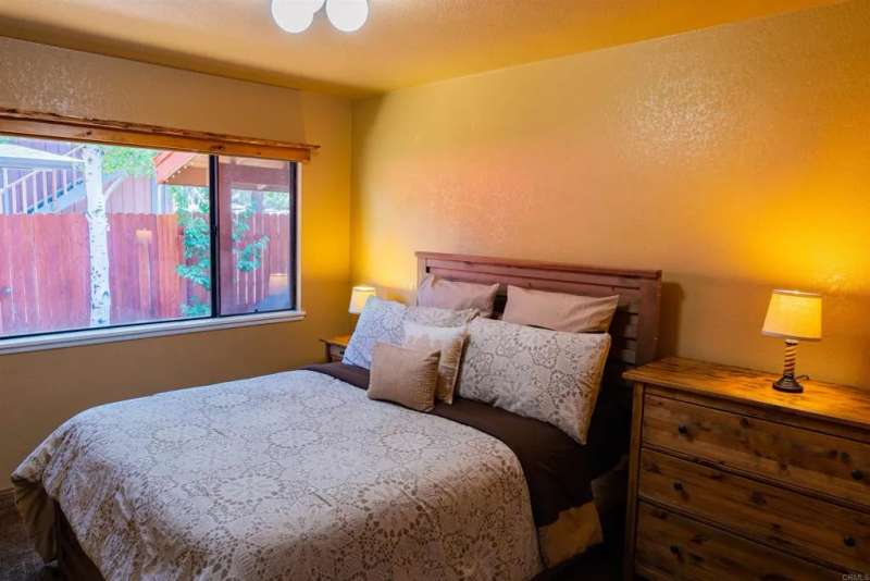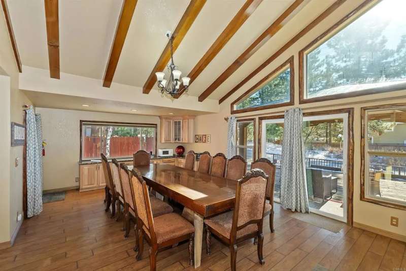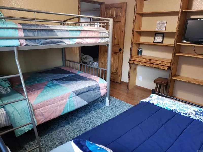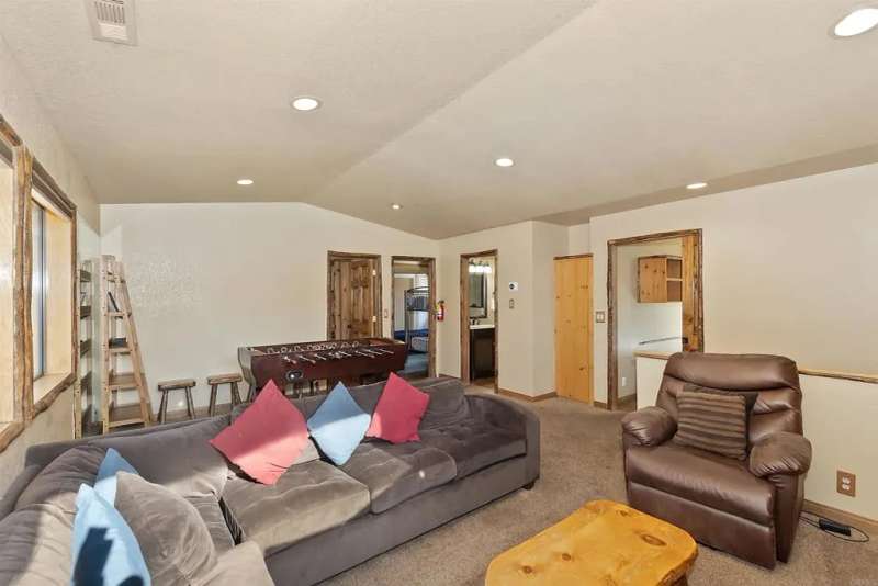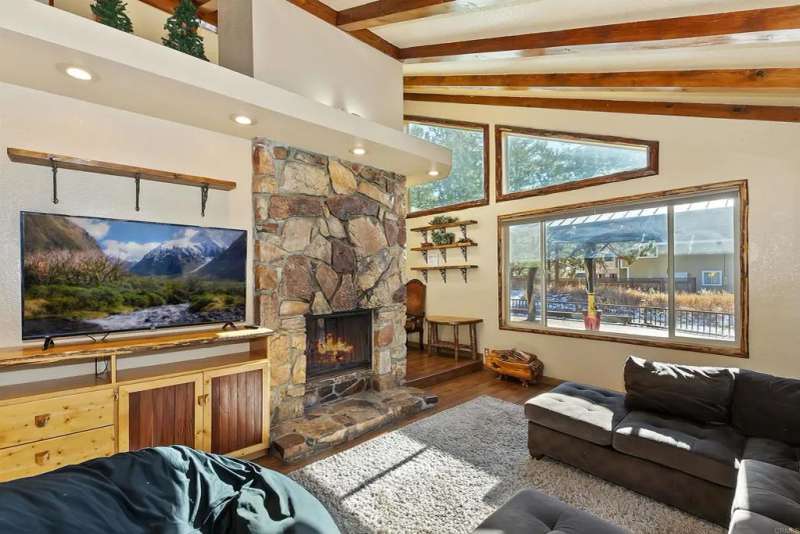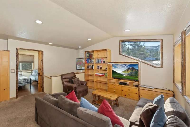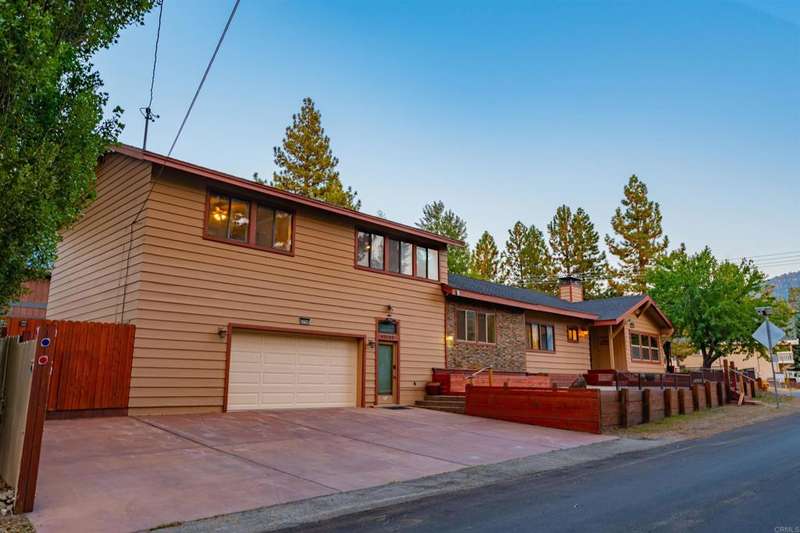 Location! Location! Location! Located about 2 minutes from Bear Mountain Ski Resource and less than 10 minutes from Big Bear Lake, the Village, the Zoo, golf course, restaurants, groceries and more. This incredible property makes the perfect full time home, second home or short term rental. This woodsy cabin features 5 bedrooms, an office which currently set up as an extra bedroom, a loft, 3 full baths, upgraded kitchen, open dining room with vaulted ceilings, double sided fireplace, separate laundry room, private backyard with basketball court. The lower level has 3 spacious bedrooms, 2 bathrooms and the laundry room. The upper level has 2 spacious bedrooms, an extra bedroom, a loft for entertainment. An attached oversized 2-car garage has a workbench and a large mudroom with plenty of room for storages. The driveway can accommodate up to 4 cars and a tandem parking on the other side of the house for another 2 cars.