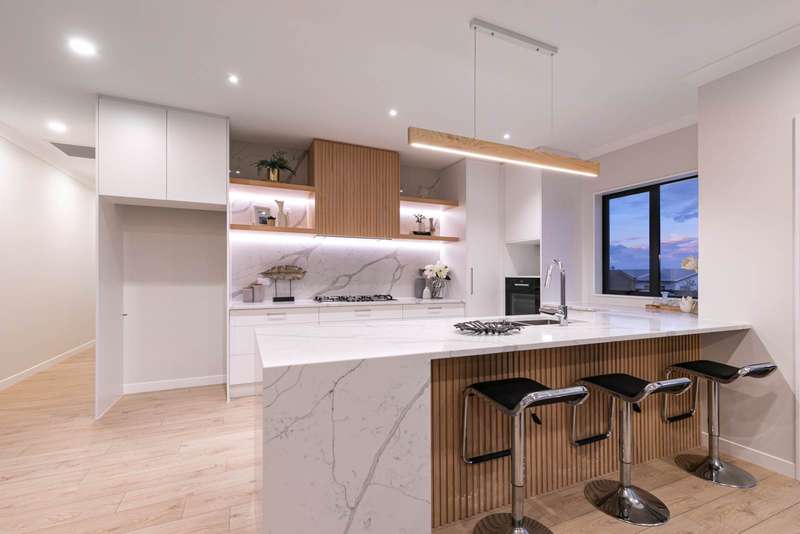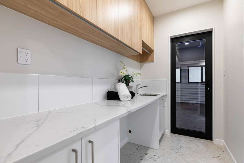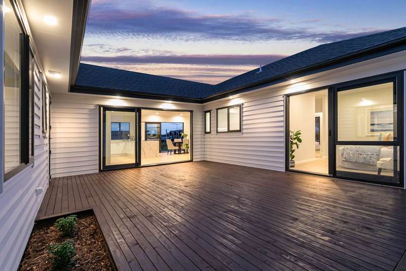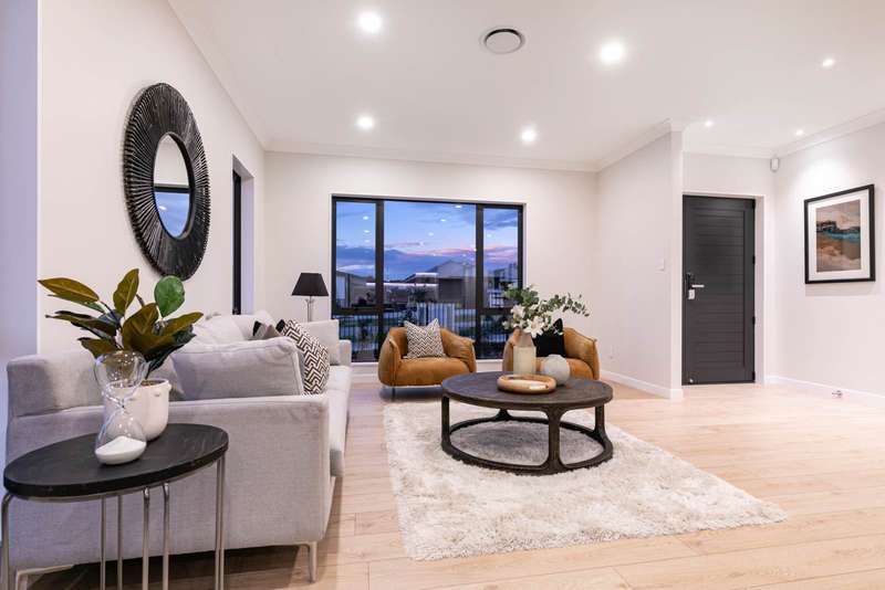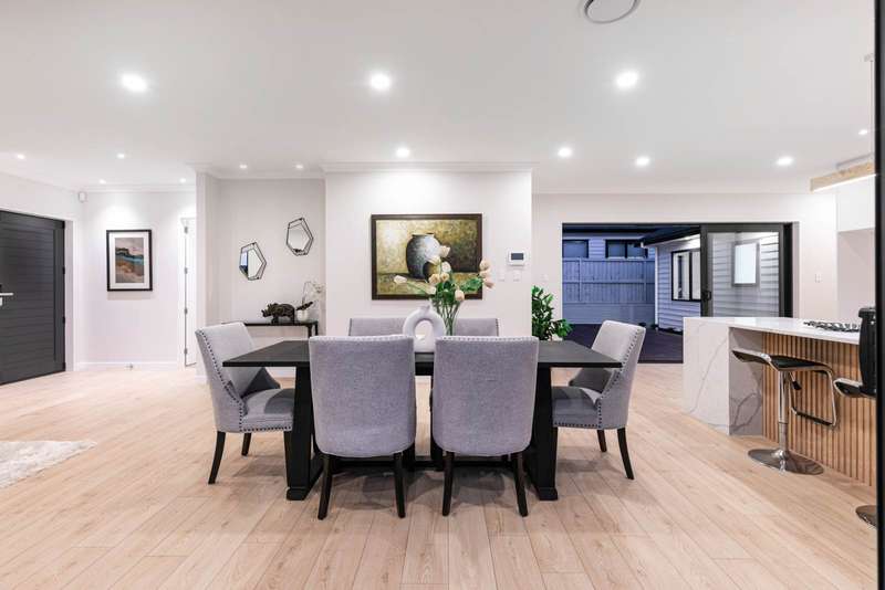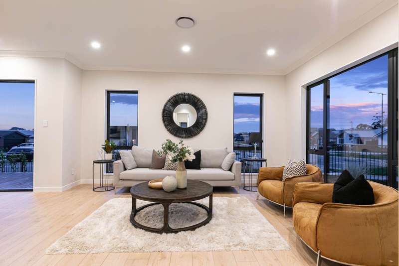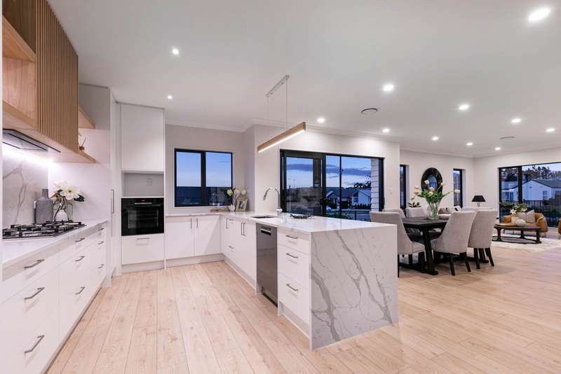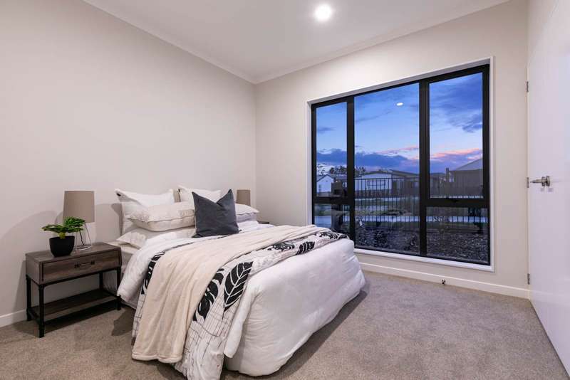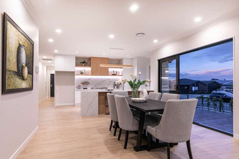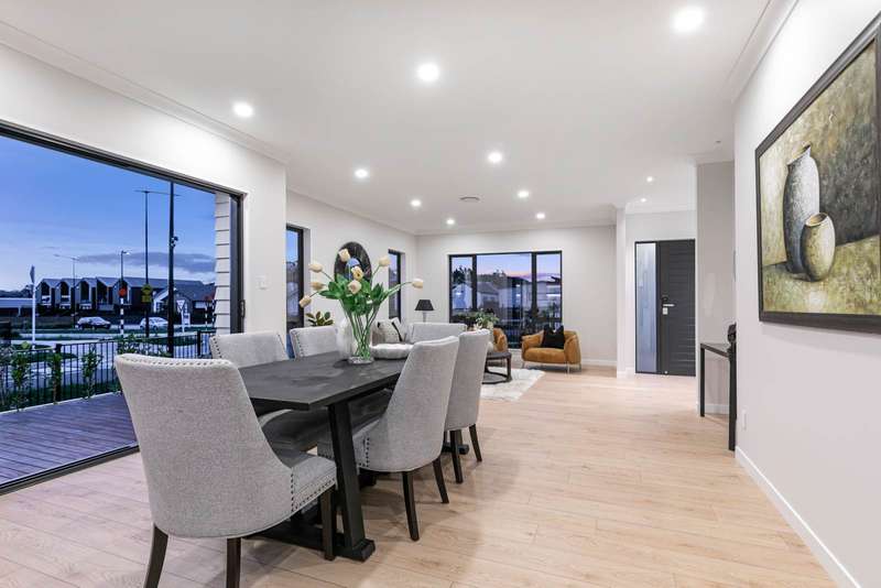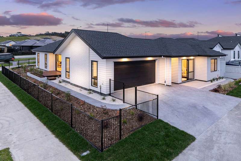 This stunning corner site home offers everything you need for modern family living, with thoughtful design and exceptional finishing throughout. With 5 bedrooms and 3 bathrooms, this property provides endless options for multi-generational living or guest accommodation. Section 501 sqm and a floor area of 225 sqm more or less with a 10-year Master Build Guarantee. The open-plan living and dining areas are filled with natural light, flowing effortlessly onto a large deck - perfect for hosting gatherings or enjoying peaceful outdoor moments. The modern kitchen features Bosch appliances and plenty of space for the home chef. There are five lovely bedrooms. A bathroom services two bedrooms and the master is a generous size with a walk-in wardrobe and a full ensuite. A slider leads out to a large deck so you can make this your own private retreat. In addition to the main home, this property features a well-separated granny potential with 2-bedroom, complete with its own living area, bathroom, and kitchenette. The dual-entry design, offering privacy and independence to the potential granny. The location is unbeatable. Within walking distance to the new Ahutoetoe School, Neighbourhood Centre, bus stops and nearby parks and scenic walkways, this home is situated for an active and connected life style. A short drive takes you to the Silverdale Shopping Centre, and easy access to the motorway via the new Pine Valley Exit makes commuting a breeze. With its versatile layout, premium finishing, and highly desirable location, this home is the perfect blend of comfortable and practicality. Ready to move in, it’s the ideal choice for families seeking space, style, and convenience. Don't miss this opportunity!