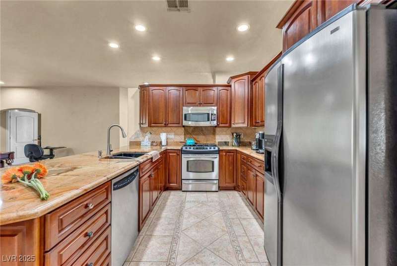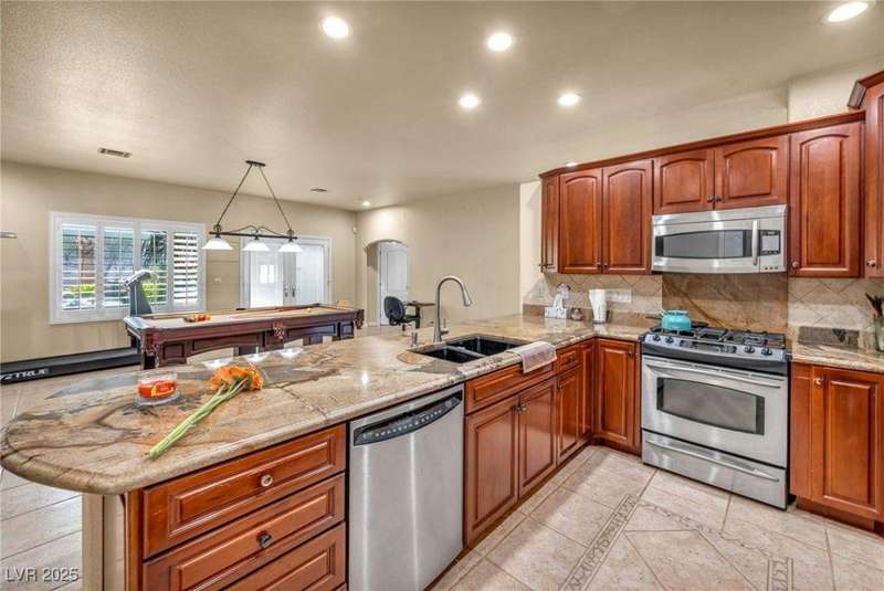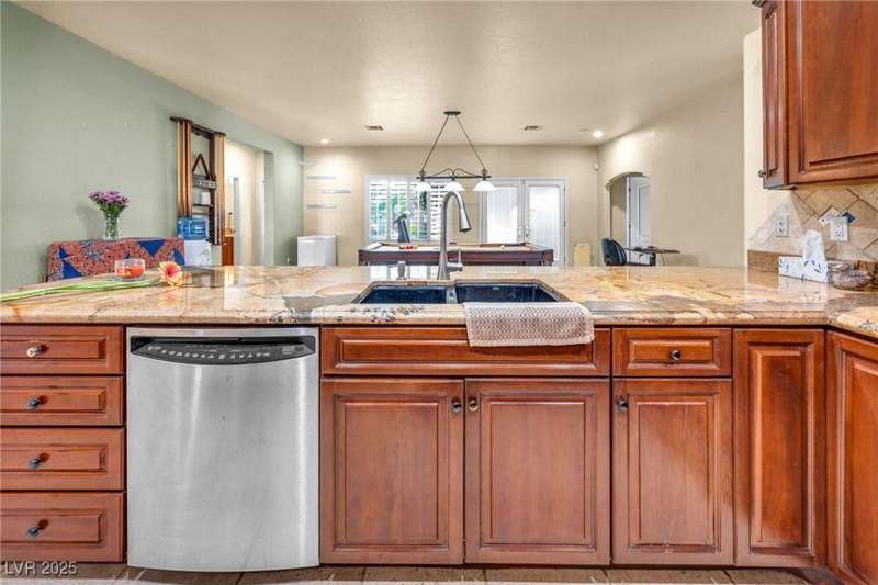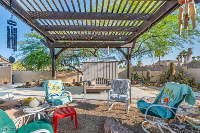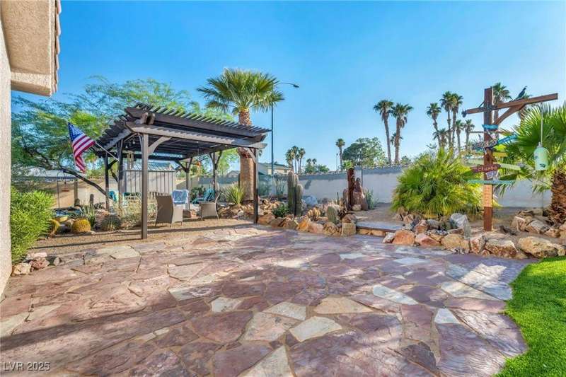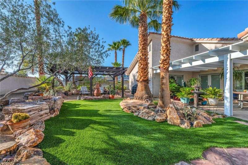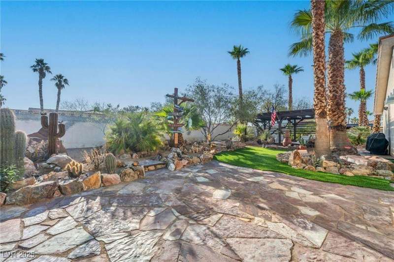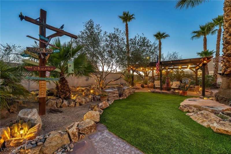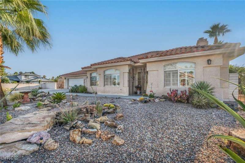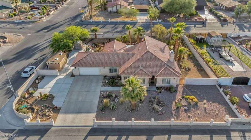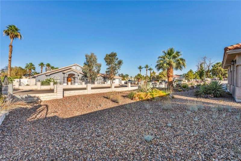 Welcome to this Beautifully Maintained single story home, On 1/2 Acre Corner Lot in Del Sol E states, No HOA. one of nine custom built residences in a peaceful, quiet neighborhood. This 2585 sq.ft. home offers 3 bedrooms, 2 1/2 spacious bathrooms, The primary suite includes ensuite with shower and jetted tub, dual sinks and a walk-in closet with tons of storage. An attached two car garage, with gated RV parking, two storage sheds, perfect for tools, extra belongings, or even a personal workshop. Just steps from the lush green Rainbow Park, where you can enjoy year-round family outdoor activities. The living room has a cozy fireplace, perfect for relaxing evenings after a challenging day. This chef's kitchen features custom cabinetry, gorgeous granite countertops finishes that make both cooking and hosting a delight. The backyard is a retreat, a serene desert oasis, beautifully landscaped with over 100 native plants, ideal for relaxing, and entertaining under the star.