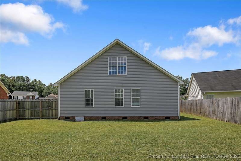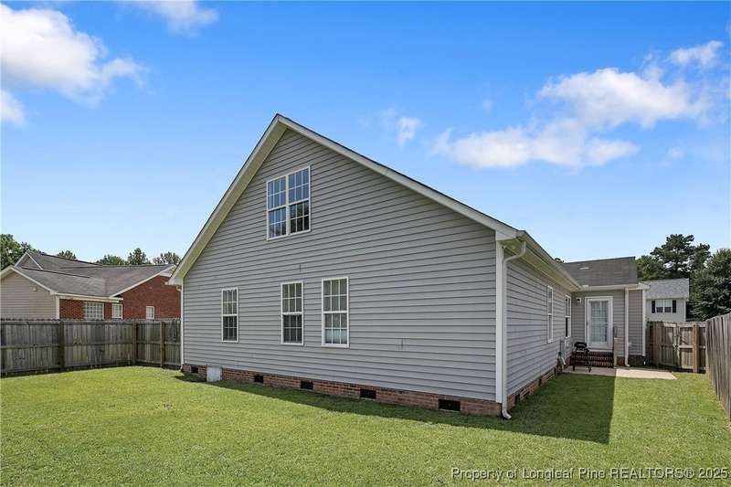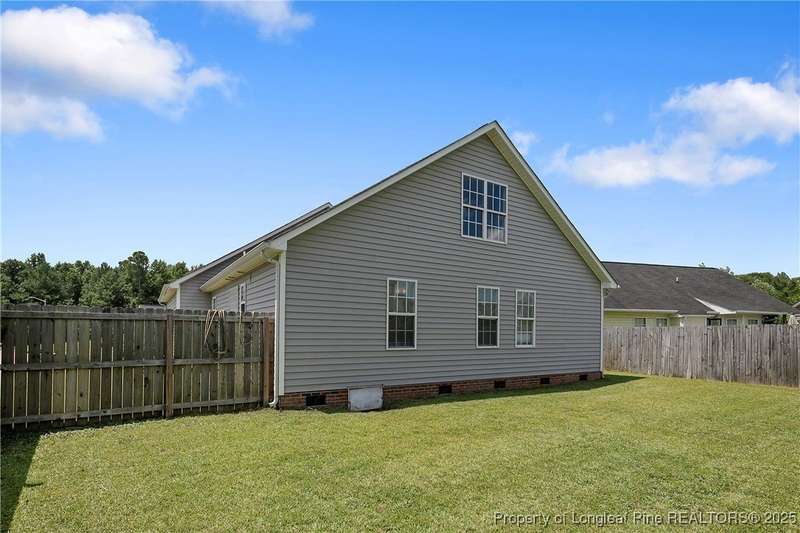 Seller is offering a $5,000 buyer concession to use as you choose on this adorable 3-bedroom, 2 bath home on the north side of Fayetteville, located close to 295 extension, Good Year Tire plant, Methodist University, Fort Bragg Army base, and restaurants/shopping. Upon arrival, you are greeted by a covered front porch that leads into the open concept living and dining space. Enjoy the convenience of the galley-style kitchen that leads into a separate laundry room area with shelving. The home has all three bedrooms on the first floor, along with 2 full baths. Owner suite bath offers dual vanities, jetted tub, separate stand-up shower, and water closet for maximum cleanliness and privacy. Second floor has a huge bonus space to use as you see fit for your family/lifestyle! Enjoy some well-deserved R&R in your new backyard that has privacy fencing surrounding it with a patio off the back entrance to the home that's perfect for grilling and entertaining!