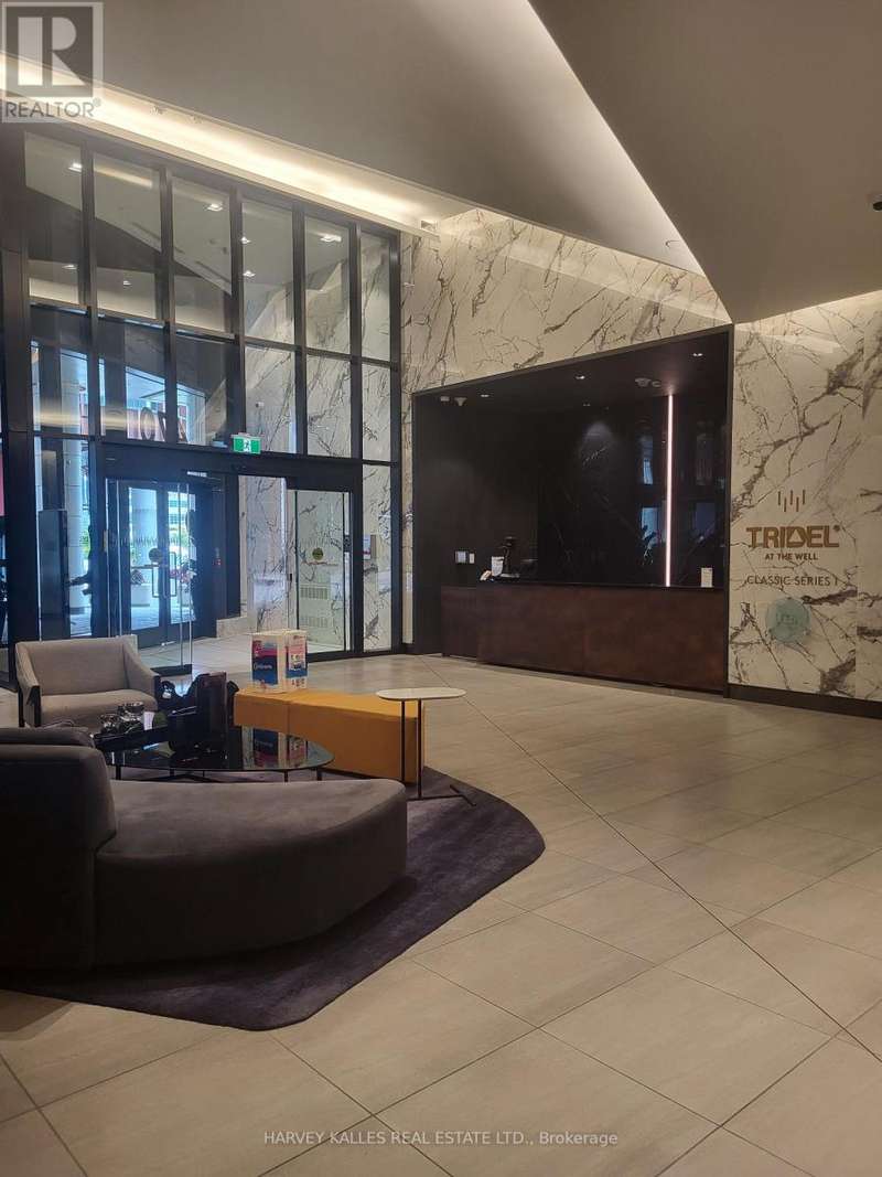 This spacious 2 bedroom + den, 2-bath suite is located at "The Well," Tridel's most dynamic new urban village in the heart of Toronto. Offering 946 sq ft of bright, open-concept living, the unit features breathtaking, unobstructed west-facing views of the city skyline and Lake Ontario. A private balcony extends from the living room, complemented by 10-foot ceilings, modern finishes, soft-close cabinetry, quartz countertops and backsplash, built-in appliances, and a full-size stacked washer and dryer. Included with the suite are a dedicated parking space and locker. Both bedrooms offer comfortable sleeping space, with the primary bedroom featuring two double mirrored closets and a luxurious 6-piece ensuite bathroom. There's also a versatile den, perfect for a home office, study, or reading nook. Residents enjoy access to world-class amenities, including a rooftop pool and sundeck, BBQ terrace, state-of-the-art fitness and yoga studios, lounges, business suites, guest rooms, a dog run, and 24/7 concierge and security. Situated within "The Well"-an architectural landmark with over 30,000 sq ft of indoor and outdoor retail-this location offers boutique shopping, dining, entertainment, markets, and direct access to the Wellington Food Hall. With unparalleled walkability to the CN Tower, PATH, waterfront, Rogers Centre, TTC, and both the entertainment and financial districts, this is downtown living at its finest. Live-Eat-Shop-Work-Play, at TRIDEL, at The Well (id:6370)